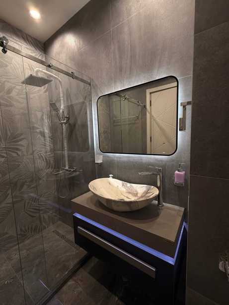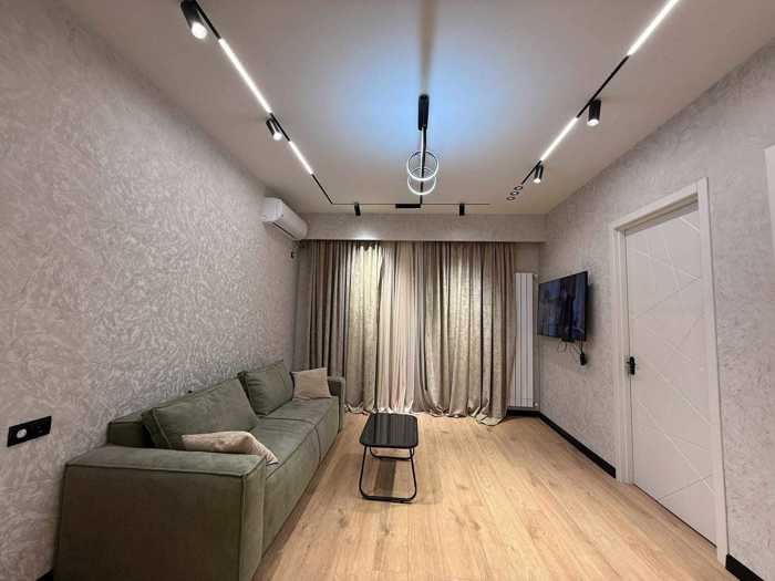 A newly constructed apartment is available for daily rental in the city project, with an area of 50 square meters. The apartment is located on the ninth floor of a 12-story building and features a bright and cozy one bedroom. The apartment has one room and one balcony, which adds extra comfort. The bedroom is equipped with a comfortable bed, ensuring a full-fledged rest. The new environment and modern design create a pleasant atmosphere where you can feel tranquility and recharge from the city's hustle and bustle.