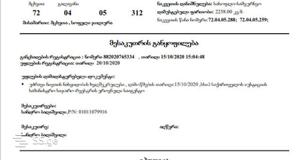 A plot of land is for sale in Saguramo, Jighaura village, Prestigulekimi area. Communications are brought to the plot.