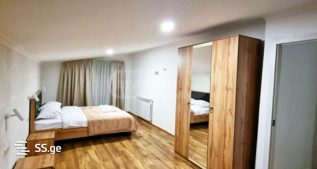 ქ ი რ ა ვ დ ე ბ ა!!!ახალაშენებული სამსაძინებლიანი კოტეჯი ბაკურიანში. სრული ფართი 127 კვ/მკოტეჯში არის სამი საძინებელი და ორი აბაზანატუალეტი. გათვლილია 8-10 ადამიანზეკოტეჯში დაგხვდებათ: სამზარეულო სრული აღჭურვილობით: გაზქურა, მიკროტალღური ღუმელი, მაცივარი, ჭურჭელი და ა.შ. უთო და საუთოებელი საძინებლები თეთრეულით აბაზანებში პირსახოცები სარეცხი მანქანა სმარტ ტელევიზორი სწრაფი ინტერნეტი ეზოში პარკინგი 23 მანქანისთვის
