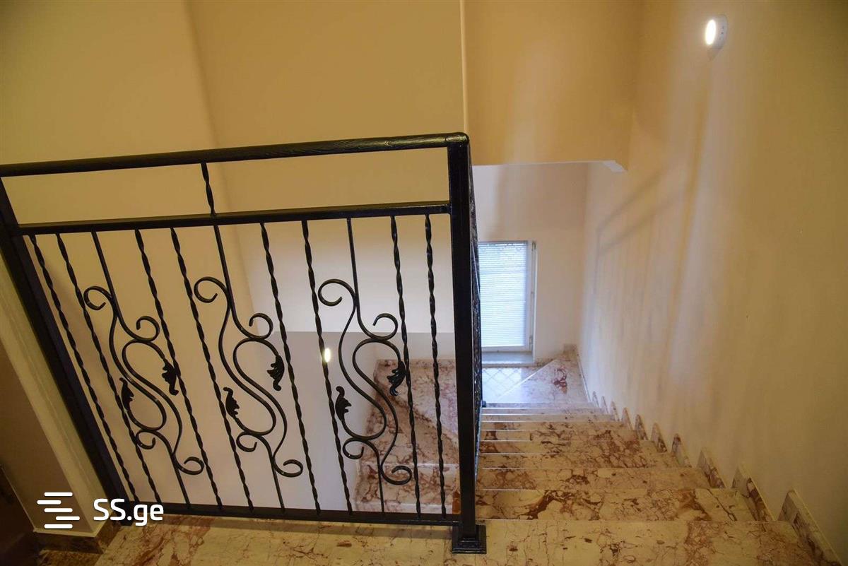 3-storey residential house built according to the standards of the embassy in a prestigious settlement at Digomi 7. On the 0th floor there is a whole basement, on the first floor there is a living room with a fireplace, a study, a kitchen (with all the necessary appliances) and a bathroom with a toilet. On the second floor there are 3 bedrooms, one with its own bathroom with a toilet, the other with a dressing room and a metal door. There is also a separate bathroom with toilet, laundry and dressing room. All rooms of the house are fully equipped with necessary equipment and furniture. There is central heating and 6 air conditioners. The house has bars, electric gates, boiler and water tank rooms, the yard is paved with stone and there are fruit trees. For more information, call me at 558898