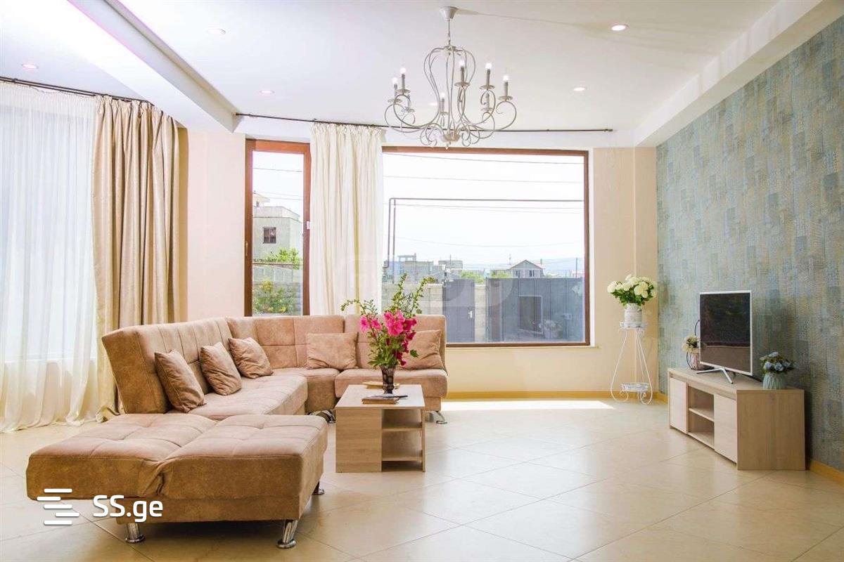 From April! For rent on the Tbilisi sea, in a quiet and ecologically clean place. Close to the forest and the sea, 3-storey house 610 sq/m, yard 1500 sq/m. 5 bedrooms, one master bedroom. 6 bathrooms. Verandas and balconies overlooking the forest. Alarm system, surveillance cameras on the perimeter of the yard, furniture and equipment. Fruit trees, automatic irrigation system, evergreen plants and roses in the yard. It can also be used as a hotel.