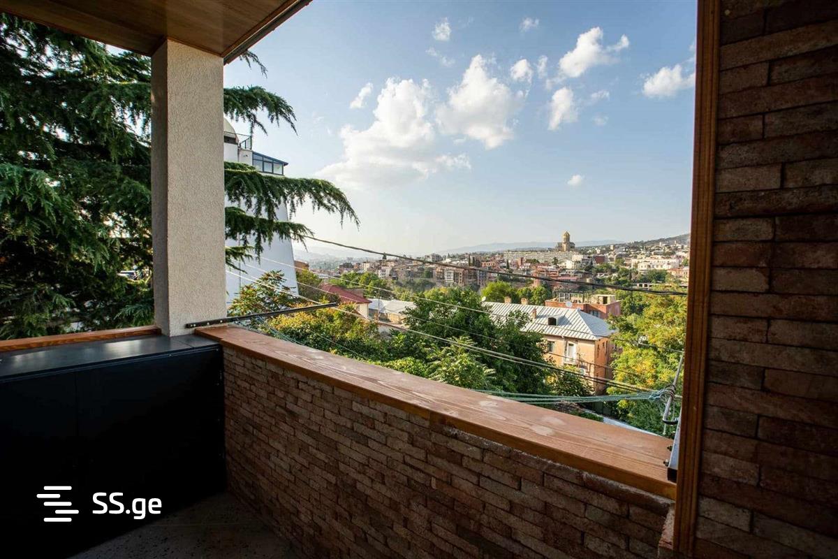 A newly built, uninhabited, five-room private house with a small yard is for rent. In the heart of old Tbilisi, in Abanotubani. With panoramic views, fresh air, peace and quiet. In the house you will find all the necessary equipment and furniture, which is as modern and high-quality as possible. The house has three independent bedrooms, one large kitchen, two bathrooms, one large living room and one balcony. Three windows in the living room, a stained glass window in one bedroom and a balcony look at the magnificent views of the city. Three-layer oak parquet is laid in the bedrooms and living room, while Spanish tile-metlach and granite tiles are used in the bathroom-toilet and kitchen. Italian wallpaper is hung on the walls. For security purposes, the house is equipped with video cameras on the outer perimeter.