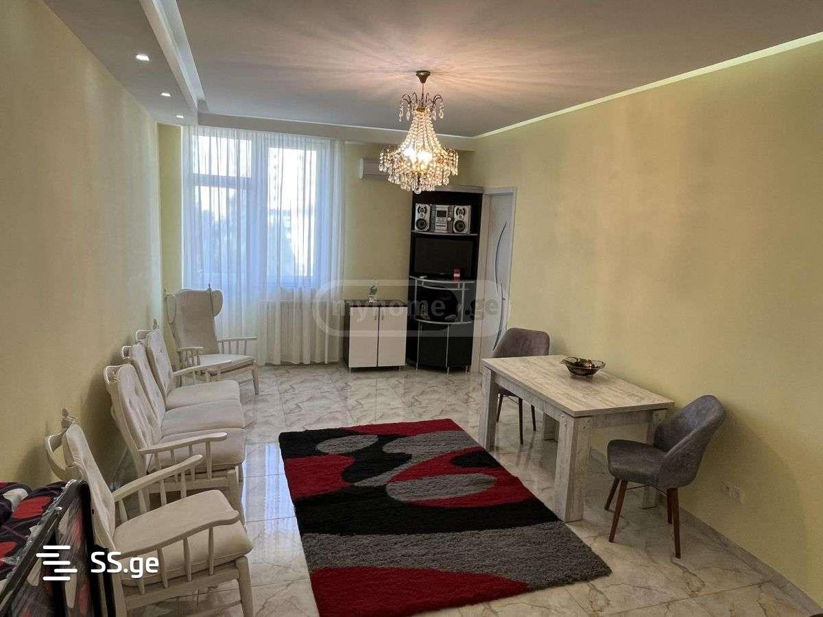 From September 1, a 2-storey, 300 sq.m. residential house is for rent in Digomi 7, on Pekin Yurashvili Street. On the first floor: living room, independent kitchen (equipped with appliances), bedroom, technical/laundry room, bathroom. On the second floor: 3 bedrooms (two master bedrooms), bathroom. All rooms have air conditioning. There is furniture in the house. The house has a garage. The area of the yard is 664 sq.m. For more information, call me at the number