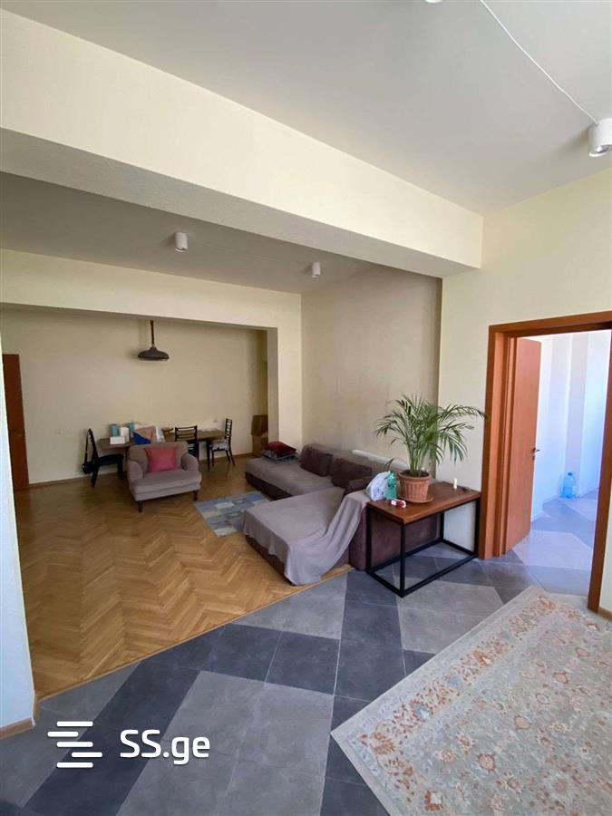2-storey house for rent. On the second floor, 120 square meters, there are two bedrooms, two bathrooms, one living room, one kitchen and storage room, as well as heating, air conditioning on the perimeter, 7 security cameras, a large yard, 3 parking spaces, one in the yard, two outside. On the first floor there is a kitchen area, there is also a bathroom and a work space of 60 square meters. The building has 3 entrances, two from the Nutsubidze side and one from the Guriel side of the upper street. It has an upper and lower yard totaling 300 square meters.