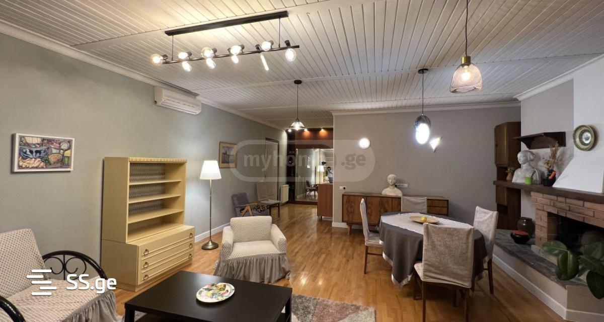 For rent in the artist's private home workshop, Euro-renovated, 155 sq.m. M. Fully insulated floor. Small 30 sq.m. with independent entrance. M. from the yard, its 25 sq. M. with a veranda. The apartment has 3 rooms, plus 25 sq.m. with a living room and is 3 meters above the ground level. It is 6 meters from the front facade. There is furniture, appliances, air conditioner, central heating, fireplace, internet, garage, has additional 20 sq.m. M. Terrace with garden view. Artists' settlement on Margiani street/Nutsubidze/. The price is $1380