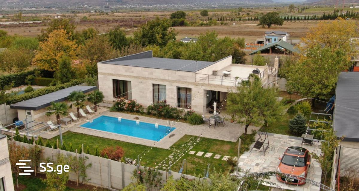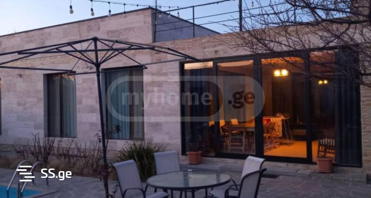 A very comfortable travertine house for rent in the best location in Saguramo. living room 45m2; isolated kitchen 25m2; 4 bedrooms; 3 St. Balcony 35 m2 with barbecue. 70m2 terrace.Pool 4*9 with filtration.1100m2 decorative and fruit tree yard.