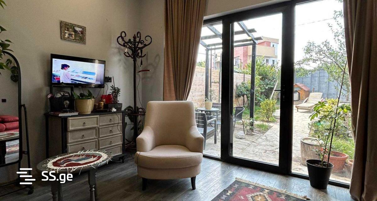 In one of the prestigious districts of Tbilisi, near the Lisi lake, a cozy house is for rent on a quiet street, with a green yard with a lawn and various beautiful plants.