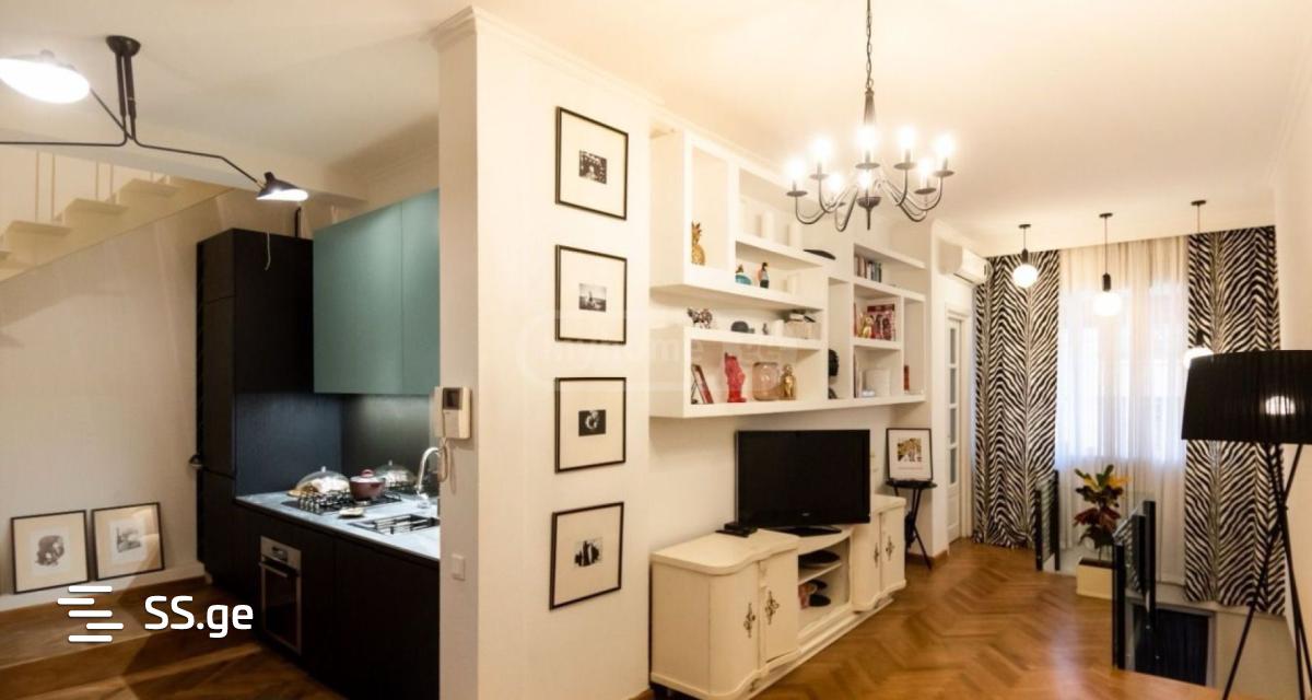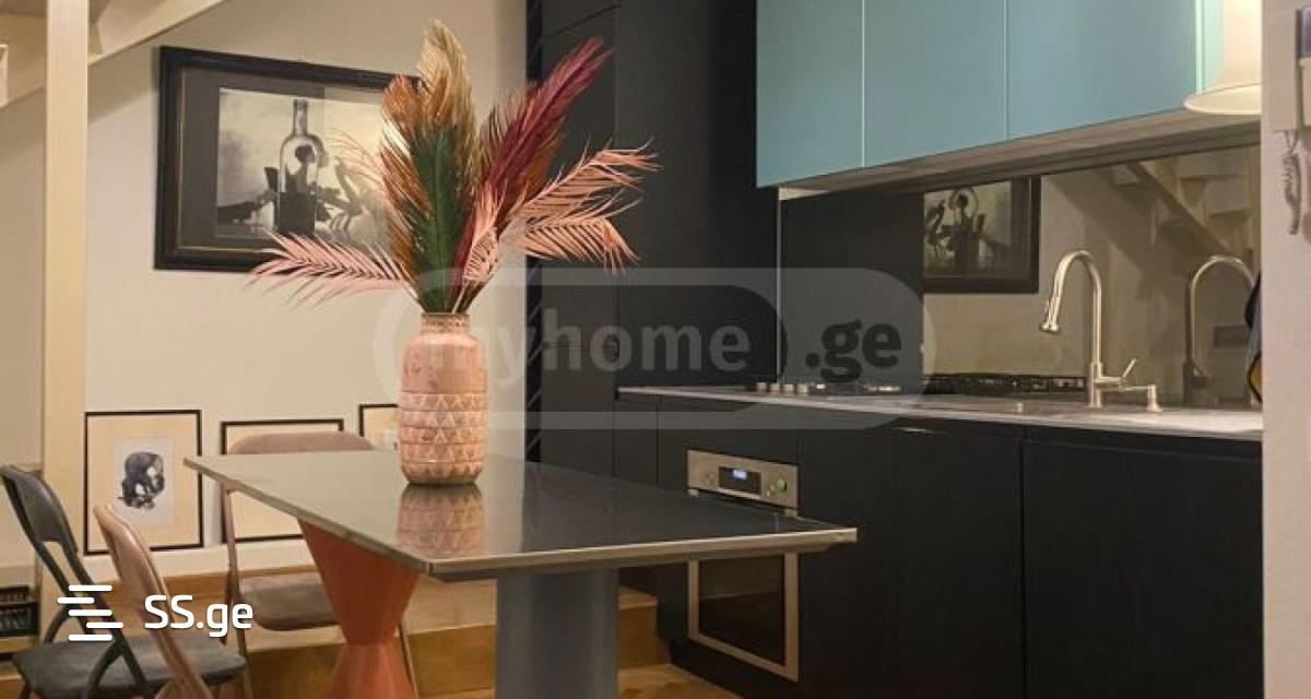Apartment on Vera, Bakradze st. 6, Italian courtyard, this apartment is private, detached, 170 m2, 3 floors, 3 bedrooms, 1 cabinet, 3 bathrooms, newly renovated furniture, heating, air conditioner, 2 washing machines, 2 balconies. 1. There is one bedroom with its own bathroom on every floor. There is a bathroom. 1st floor is a study and bathroom, 2nd floor is a studio kitchen, living room with bathroom, 3rd floor is 2 bedrooms with a veranda and a bathroom.