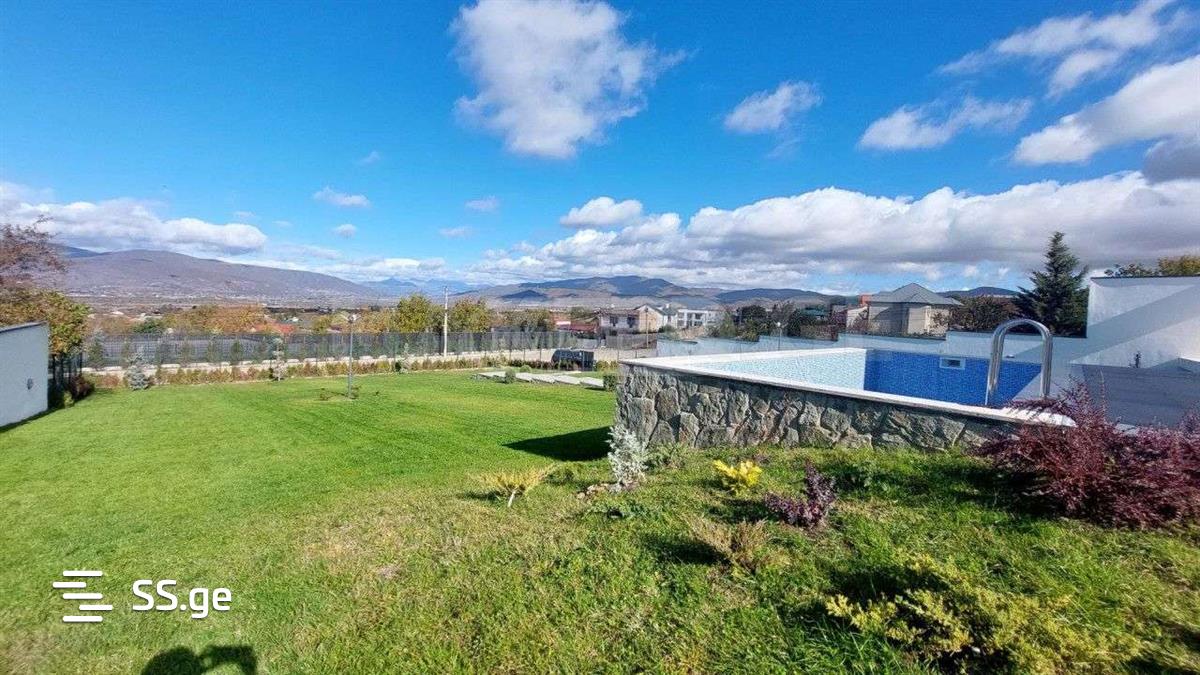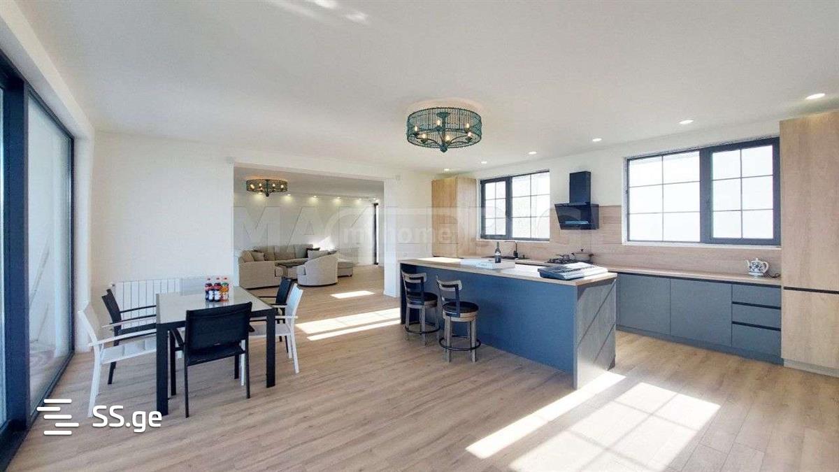 For sale in Saguramo, a newly built 3-storey house located in one of the most prestigious areas. The square footage of the house is 460 sq/m. The area of the yard is 1350 sq/m. The house is decided by European style renovation, which is very bright with natural lights. The main level consists of a large living room, an open kitchen-dining area, a separate bedroom and an attached bath. On the second floor there are 4 bedrooms, 2 of which are so-called "master bedrooms", the bedrooms are separated by an extraordinary wide veranda with beautiful views. The kitchen is fully equipped with a breakfast bar and necessary appliances. with stained glass views. On the lower floor, there is a separate living space, which can be used in different ways. It is distinguished by a beautiful green yard with its own swimming pool. At the side entrance of the house, there are separate parking spaces for guests. The house is equipped with cameras and a security system.