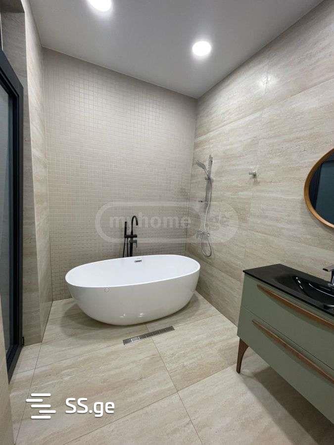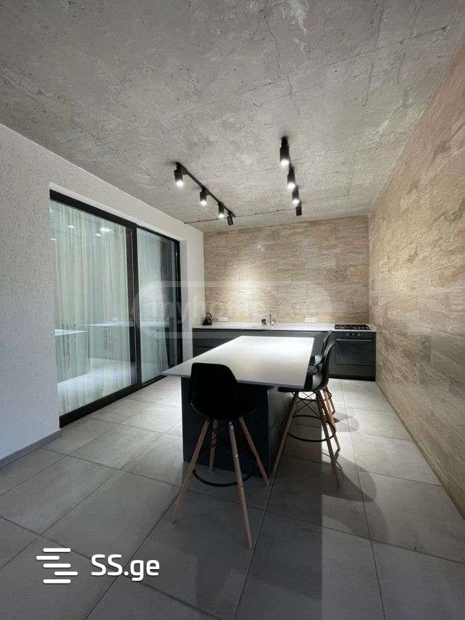 A newly built country house for sale, in Saguramo, the house is built with the highest quality building materials, surrounded by a stone fireplace, which provides seasonal heating and cooling of the house. The house is equipped with the best quality equipment and furniture, a neat yard, an underground garage for 3 cars, a pool. l