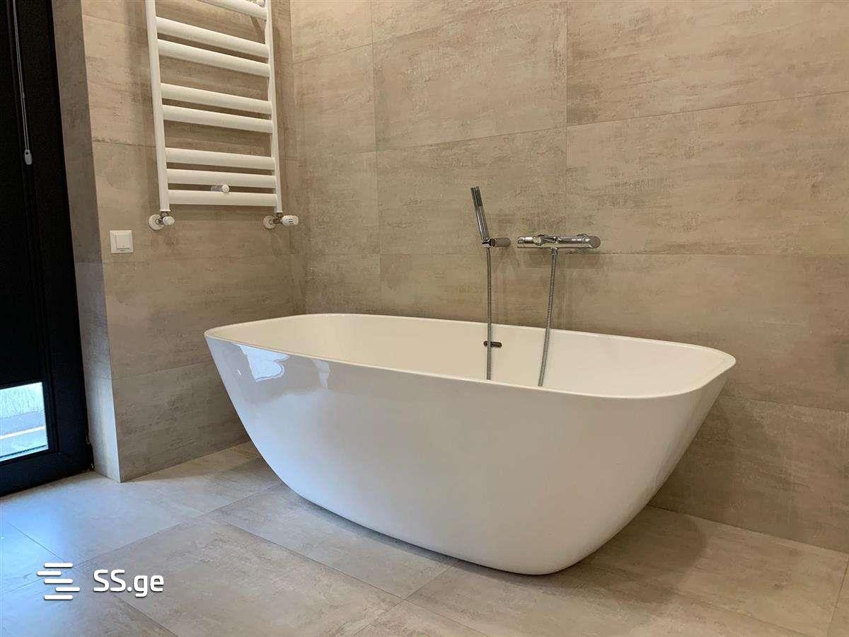 A newly built private house for sale, with furniture and appliances in Shindis, there are 5 bedrooms in the house, 4 of them are located on the 2nd floor. One of the bedrooms has its own private bathroom-toilet and dressing room (Master Bedroom). The house is flat roofed and therefore has an open terrace with extraordinary views. There is also a covered living room on the terrace. The yard of the house is 40 sq.m. Isolated cellar. The lawn is laid in the yard and the irrigation is fully automated.