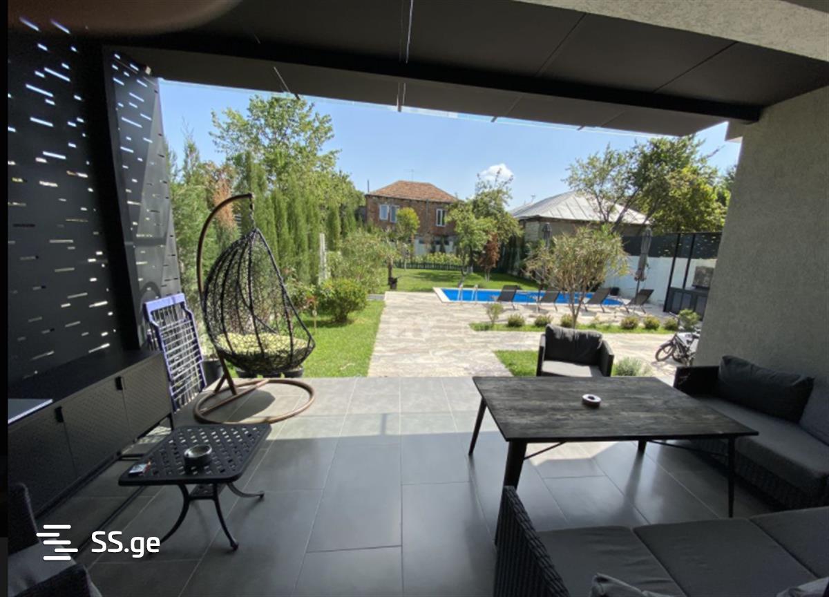 Agrak for sale in Tskneti with the best arranged pool and yard. Alarms, cameras. The house is built with the best building materials.
