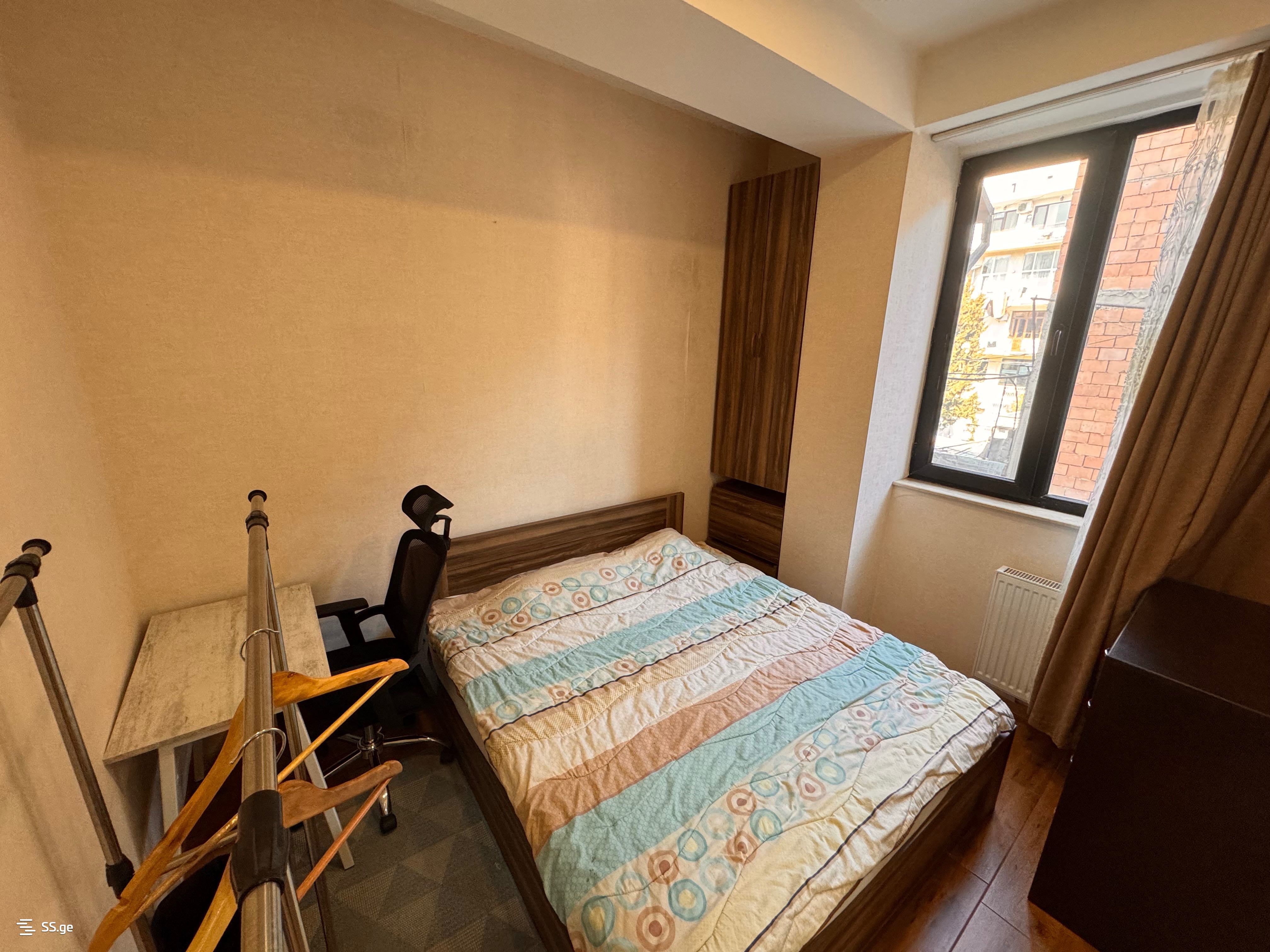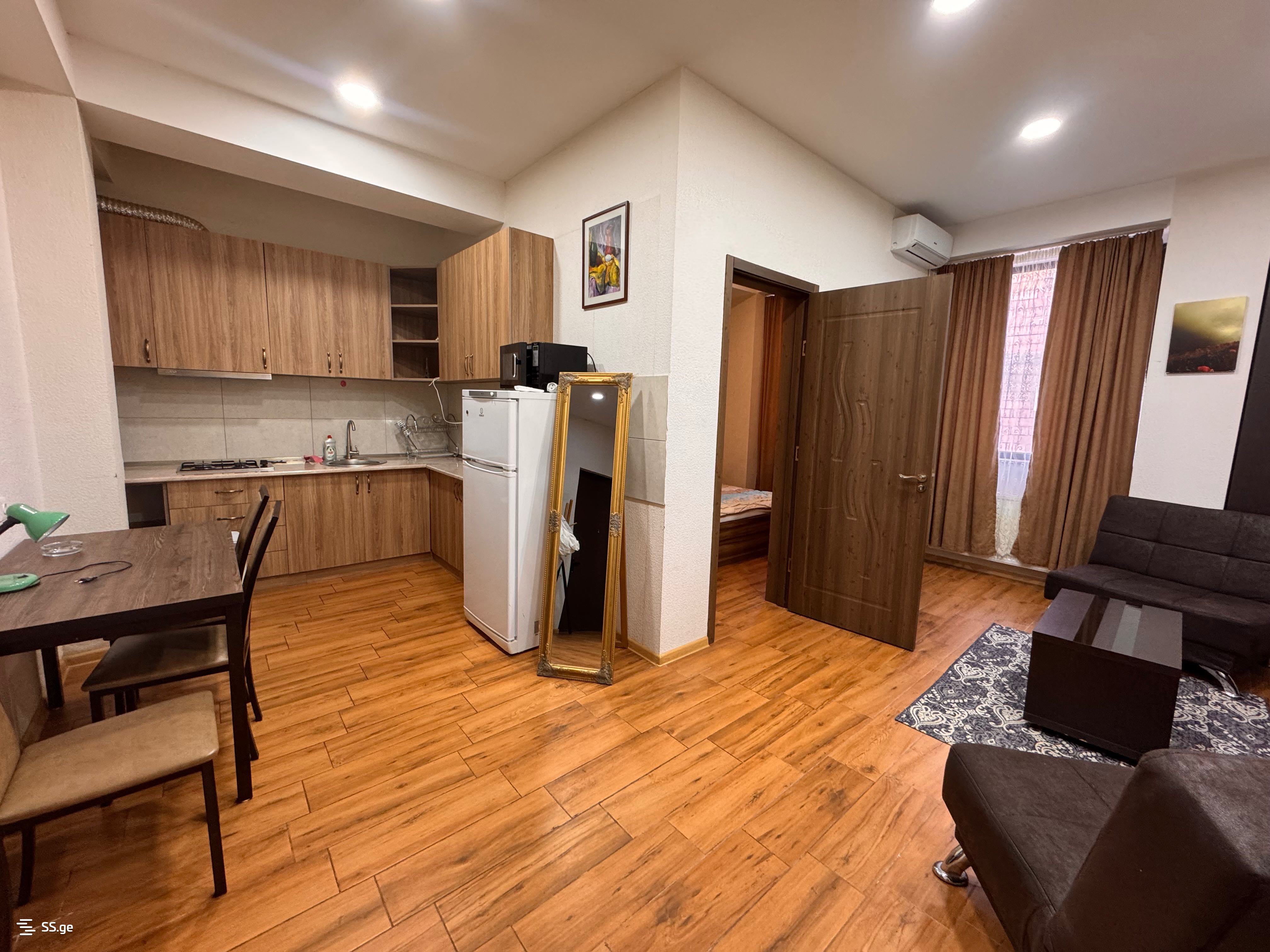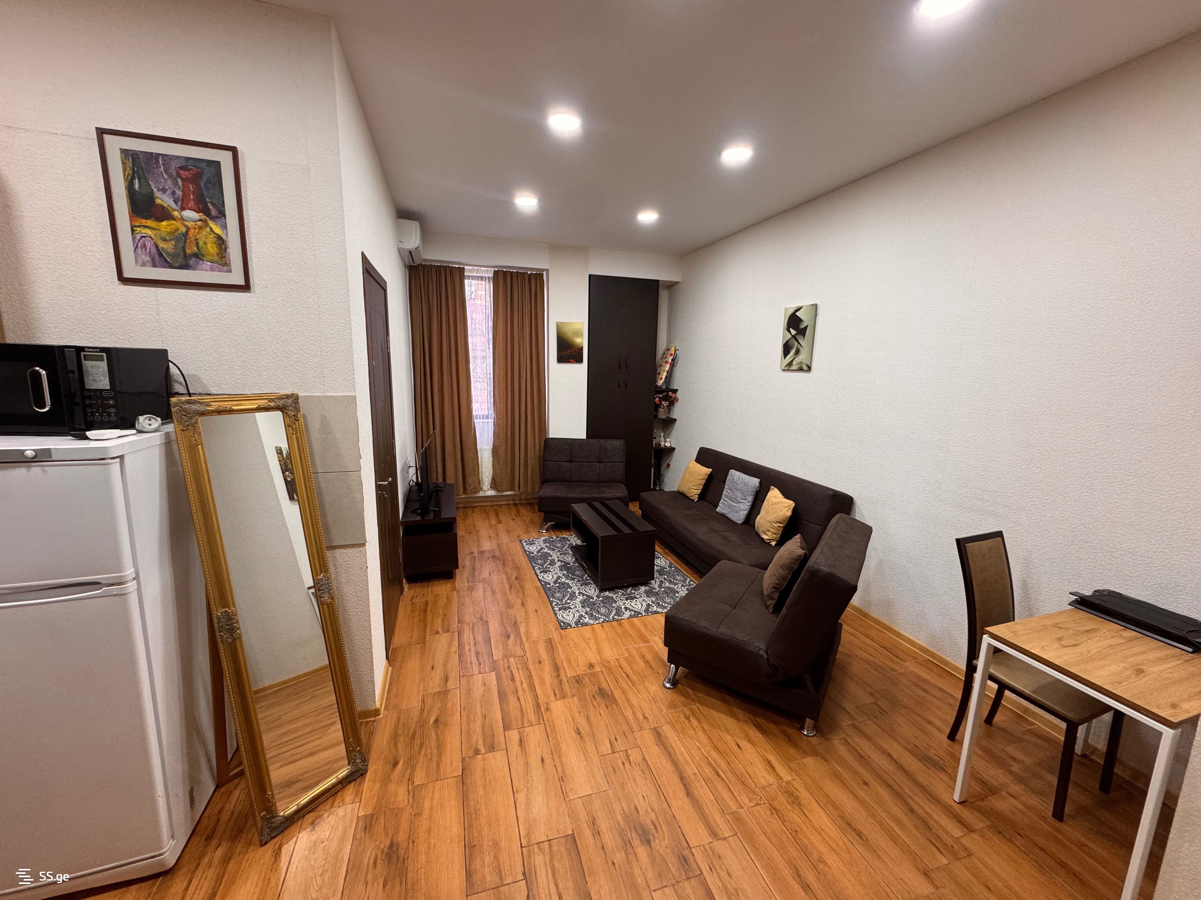 A modern renovated apartment is available for rent for two people with payment for the first and last month in advance, located in a new building in Vera, in the heart of Tbilisi, in a quiet and peaceful location behind the Philharmonic. The apartment has all the necessary household items and appliances. It does not have a balcony but is very cozy and comfortable, with windows in both the living room and the bedroom. Pets are allowed.