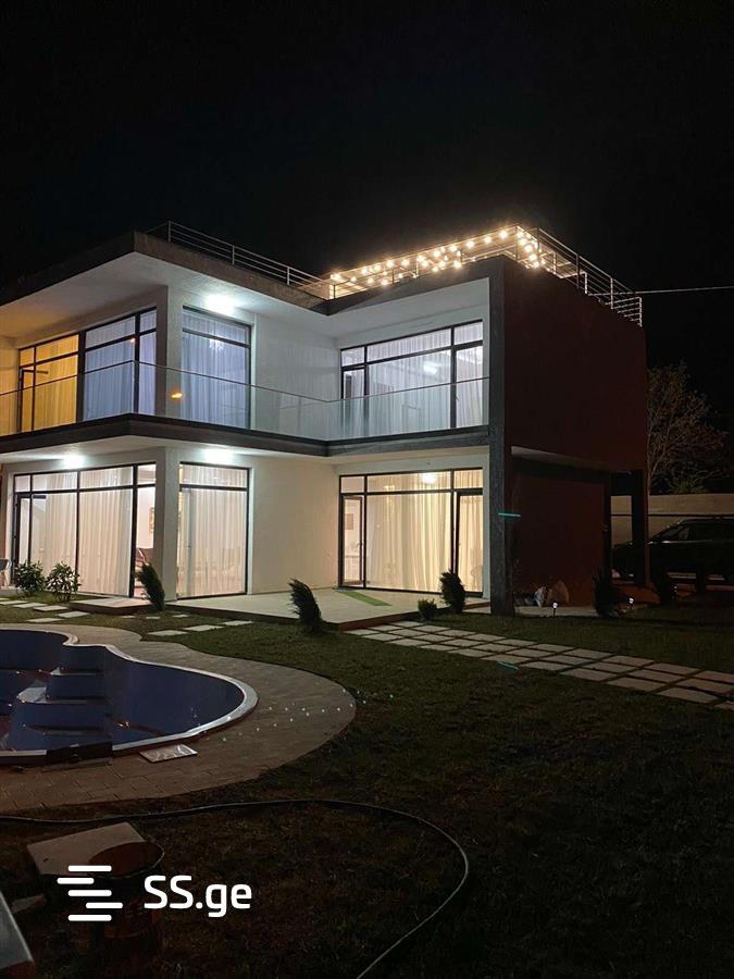 Urgently!!! Newly built, uninhabited house for sale in the best, most prestigious area of Tsavkisi. Large living room, built-in acrylic kitchen, 3 large bedrooms, 4 full bathrooms. Point, semi-roofed, furnished porch with kitchen and sv. Point, furnished yard with pool, solar lights, high quality renovation, super views with 360 degrees, furniture, appliances. The house is guarded, Magti internet and television are turned on.