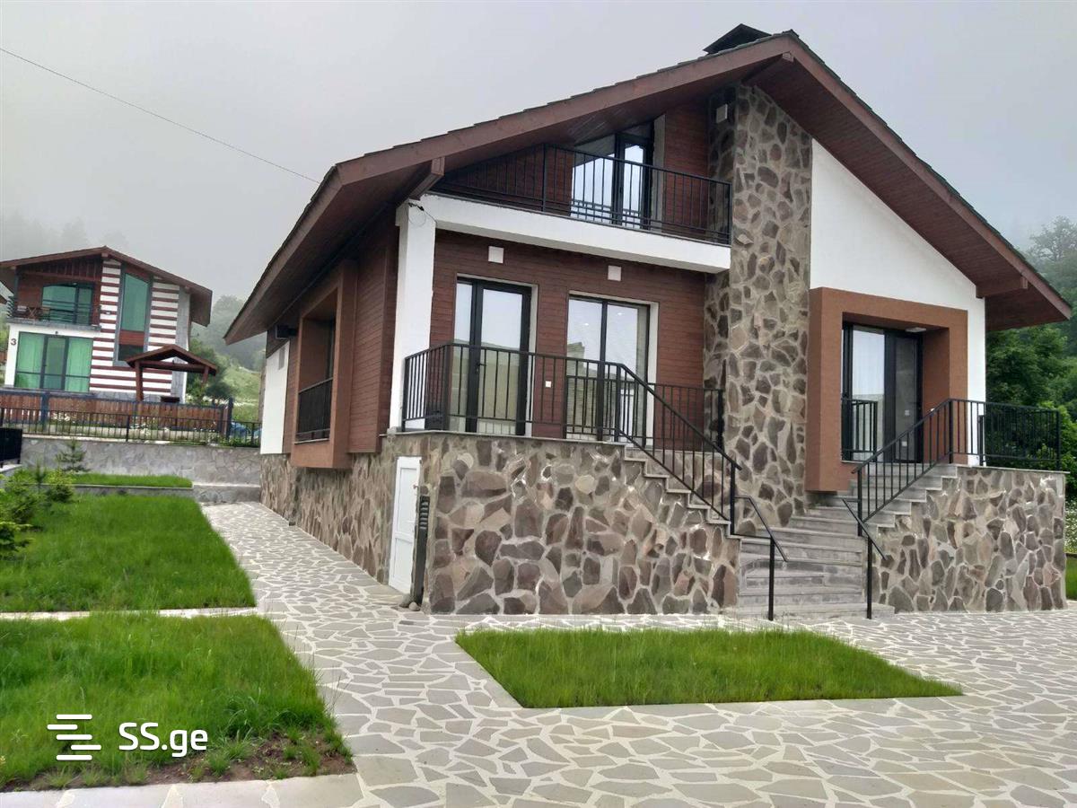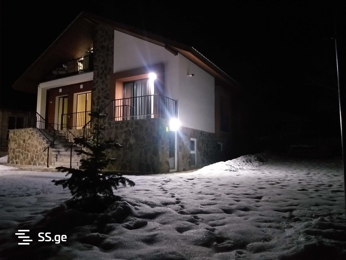 ბაკურიანში, კობა წაქაძის ქუჩაზე (წრიულზე), სასტუმრო ვილა მონტეს უკან, ტყესთან, ქირავდება ახალი, სრულად აღჭურვილი, კეთილმოწყობილი, უცხოვრებელი 5 ოთახიანი, აივნებიანი კოტეჯი ჟორჟიკებთან, ახალი რემონტით. კოტეჯი განკუთვნილია 12+2 პერსონაზე, სტუდიო ოთახით (დიდი მისაღები ზალა-სამზარეულო, ბუხართან ერთად 30მ2), 4 აივნიანი საძინებლით(ინდივიდუალური სველი წერტილებით, ორთოპედიული მატრასებით, ანტიალერგიული ბალიშებით, ბავშვის საწოლით, თეთრეულითა და პირსახოცებით), ერთ სართულზევე. კოტეჯი აღჭურვილია ავეჯითა და თანამედროვე ტექნიკით (ინტერნეტი, WI-FI, ტელევიზორი, სარეცხი მანქანა, საშრობი მანქანა, მაცივარი, მტვერსასრუტი, დიდი გაზქურა გამწოვით, მიკროტალღური ღუმელი, ელ.ჩაიდანი, სვ.წერტილებში თმის საშრობებით, უთოთი.), ცენტრალური გათბობით. სამზარეულო აღჭურვილია ყველანაირი ჭურჭლითა და ინვენტარით. კოტეჯს აქვს დიდი კეთილმოწყობილი ეზო ფანჩატურით, საქანელებითა და ჰამაკებით. ეზოში დგას მაყალი შამფურებით და შეშით. წყლის გათიშვის შემთხვევაში ალტერნატიული წყლის ავზით. კოტეჯს გარშემო აკრავს ტყე, არის მყუდრო და მშვიდი გარემო. დასასვენებლად ძალიან კარგი ადგილია.