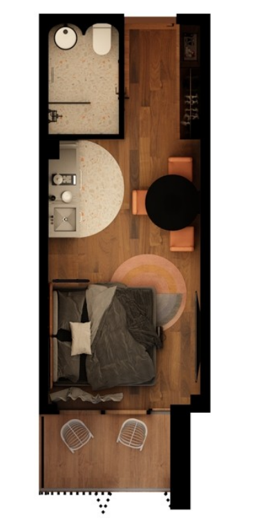 შეთავაზებული ბინების მინიმალური ფართი 22 კვ.მ.-დან იწყება. შენობა სრულად გარემონტებულია. გეგმარება განსხვავებულია. შესაძლებელია საცხოვრებელი ფართის შეძენა პანორამული ფანჯრებით და ფართო აივნით, ან სტუდიოს არჩევა, ბინა უცხო ხუთკუთხედი ოთახით და მყუდრო პატარა აივნით.