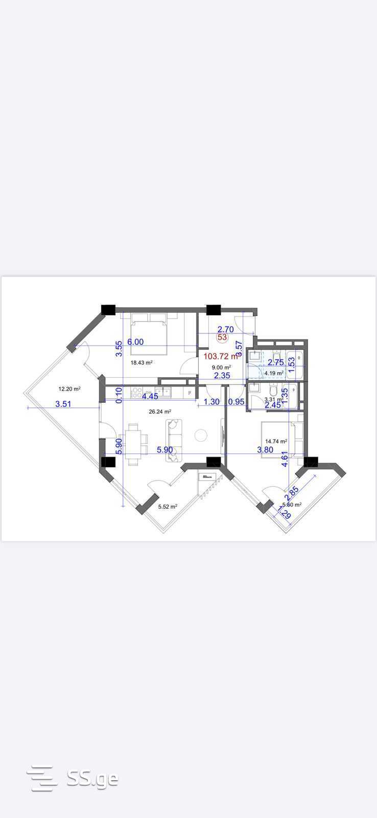 სითიზენ (cityzen) კომპლექსის D კორპუსში, მე 3 სართულზე იყიდება 103.7კვ.მ. ფართობის 2 საძინებლიანი ბინა. ამ კონკრეტული კორპუსის მშენებლობა დასრულებულია, ხოლო სრულად კომპლექსი სრულდება 2026 წელს.