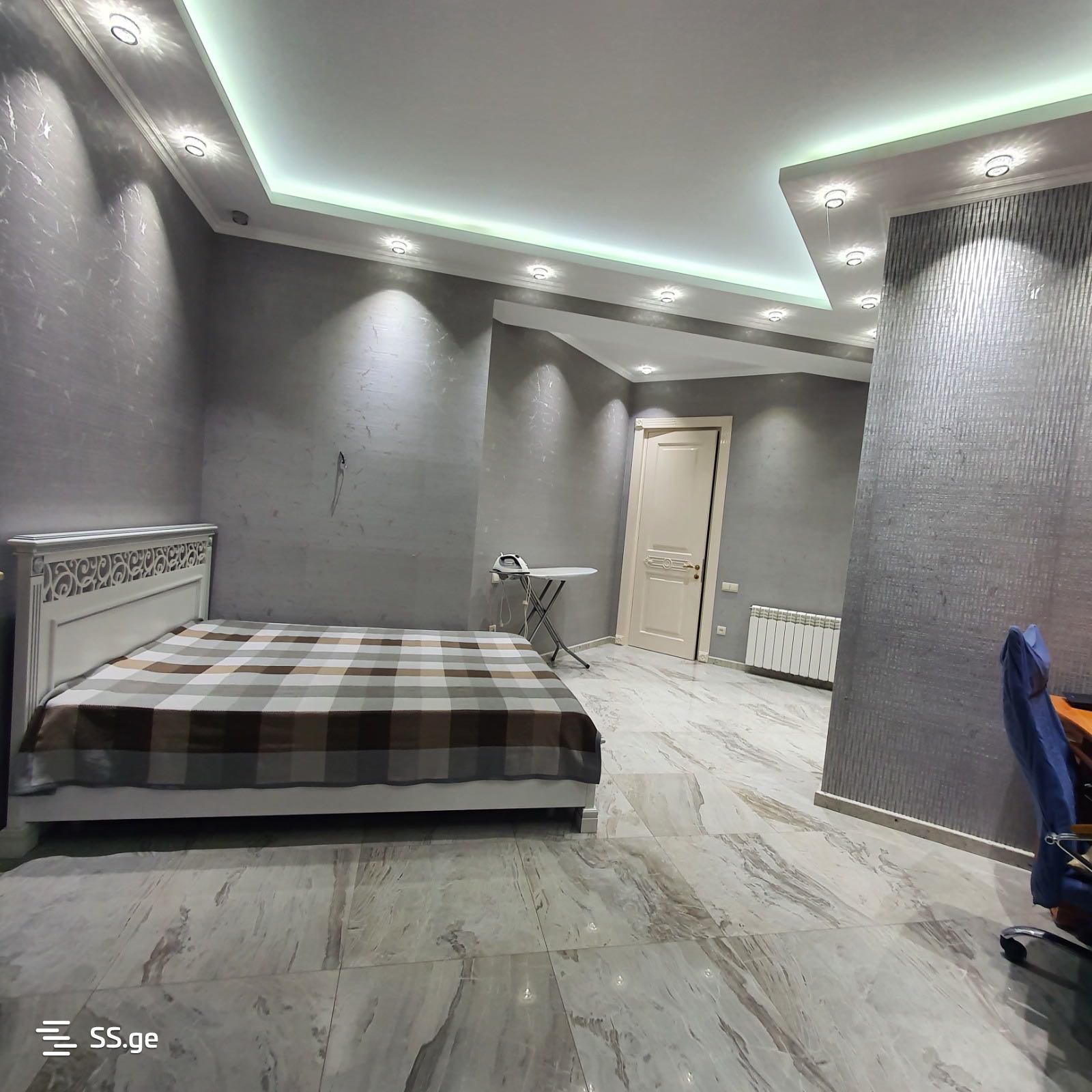 განათება - ავსტრიული წერტილოვანი განათება, ორიგინალი სვაროვსკის თვლებით, ორიგინალი ფრანგული გაჭიმული ჭერი (უმაღლესი კატეგორია); პერიმეტრზე ღამის დიოდური თბილი ნათება;