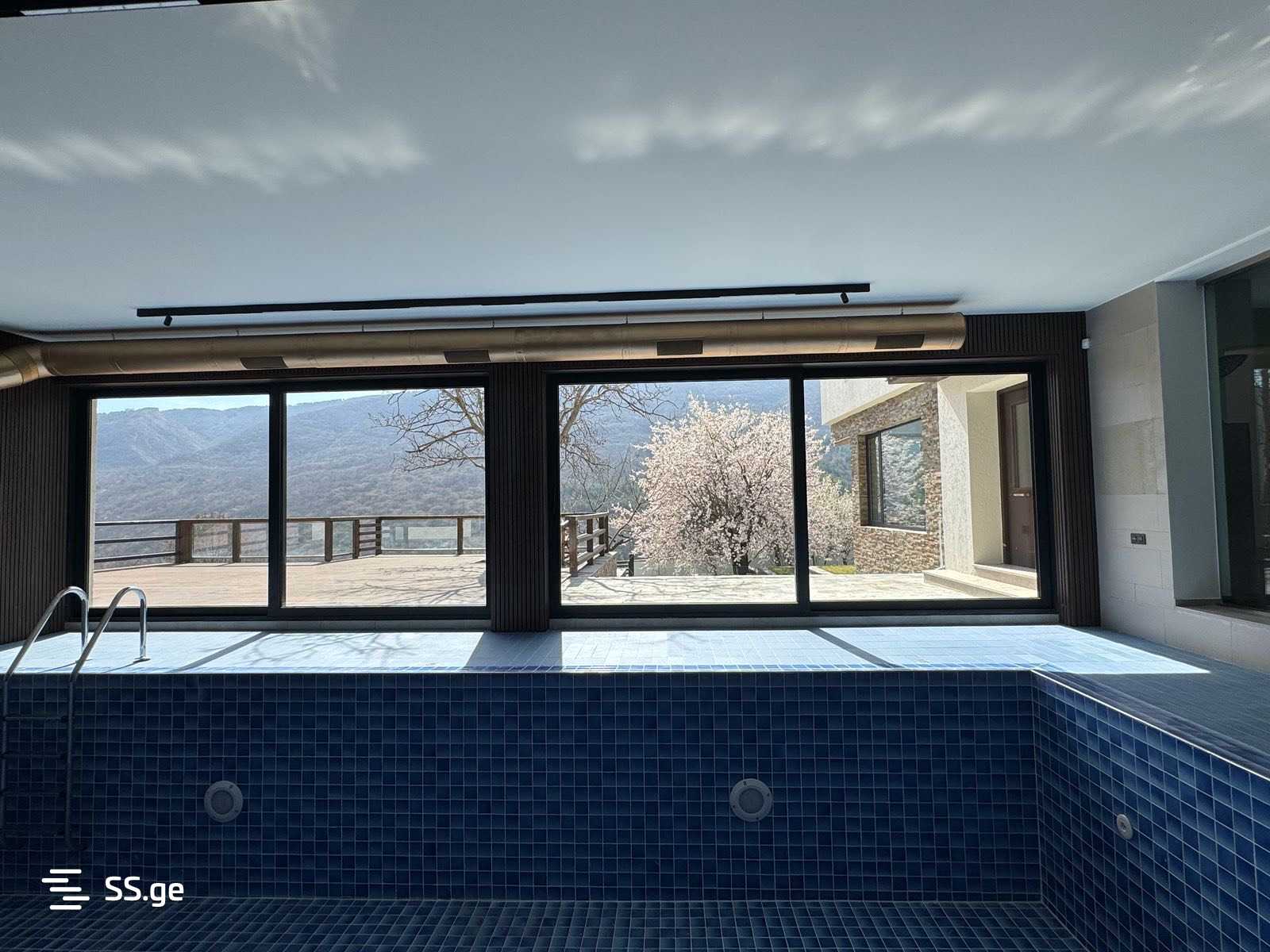 სახლი სრულიად ახალი აშენებულია და გარემონტებულია პრემიუმ მასალებით. მასში განთავსებულია 7 საძინებელი, აუზი, ულამაზესი ვერანდები და თავისუფალი სივრცეები, რომლებიც მრავალფუნქციურ გამოყენებას უზრუნველყოფს. ასევე, ჩაშენებულია მაღალი ხარისხის ტექნიკა და დამონტაჟებულია ცენტრალური გათბობისა და გაგრილების სისტემები.