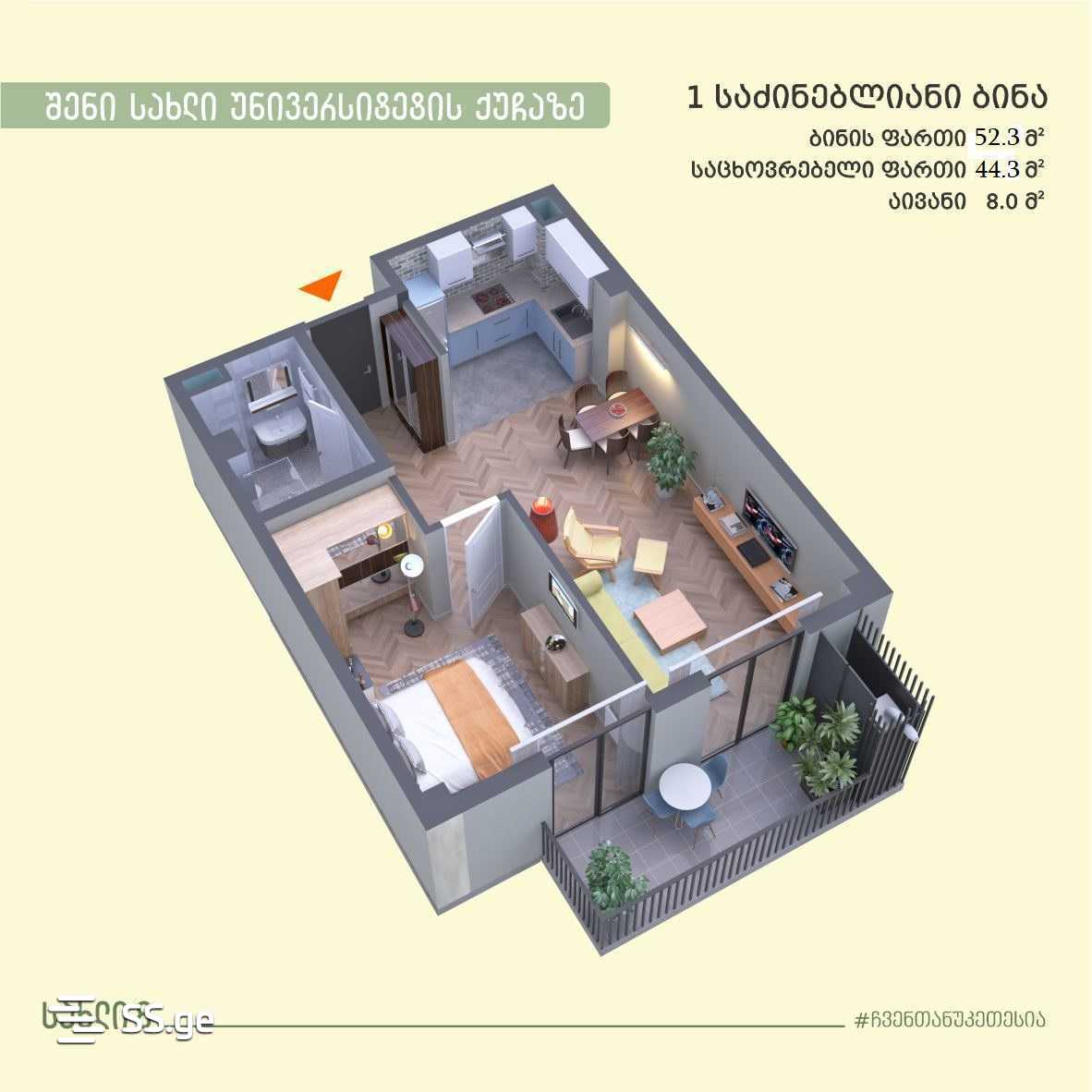 53 მ²ოთახი