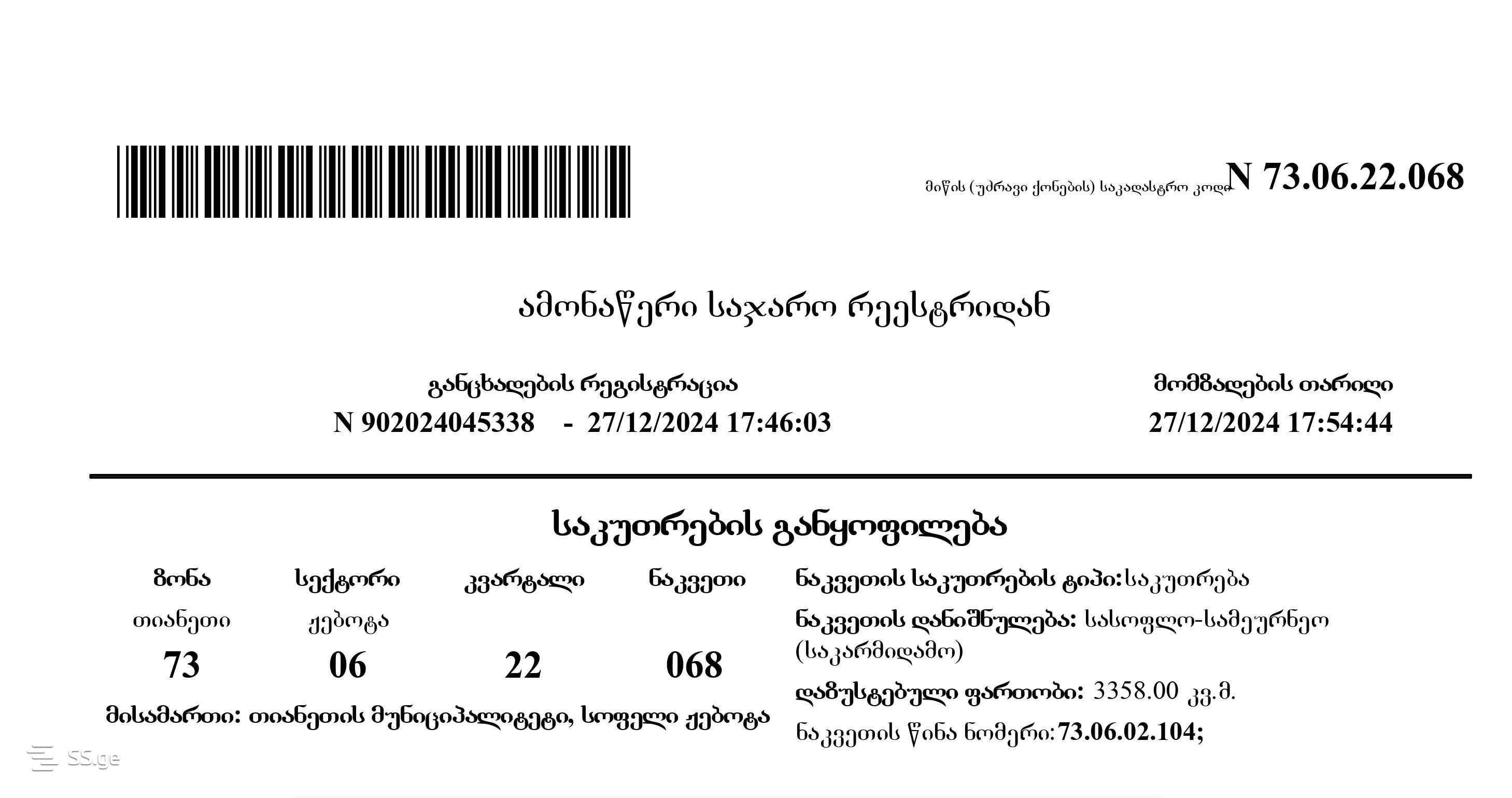 იყიდება მიწის ნაკვეთი ჟებოტაში