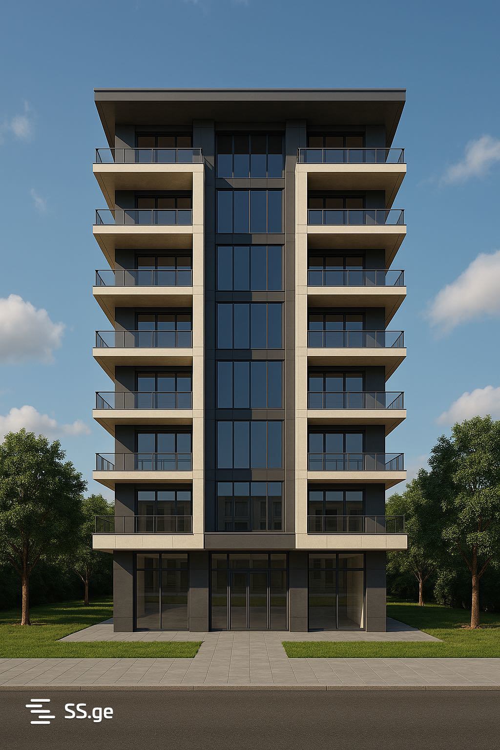 • წინ გამწვანებული ტერიტორია – დამატებითი სივრცე ან ესთეტიკური ღირებულება