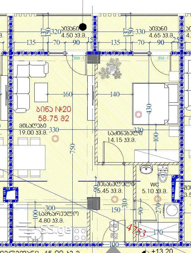 58.75 მ²ოთახი