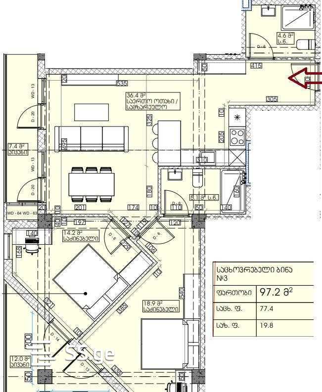 იყიდება ბინა დიღომში, კრისტიან სტივენის ქუჩა 24. თეთრი კარკასი
