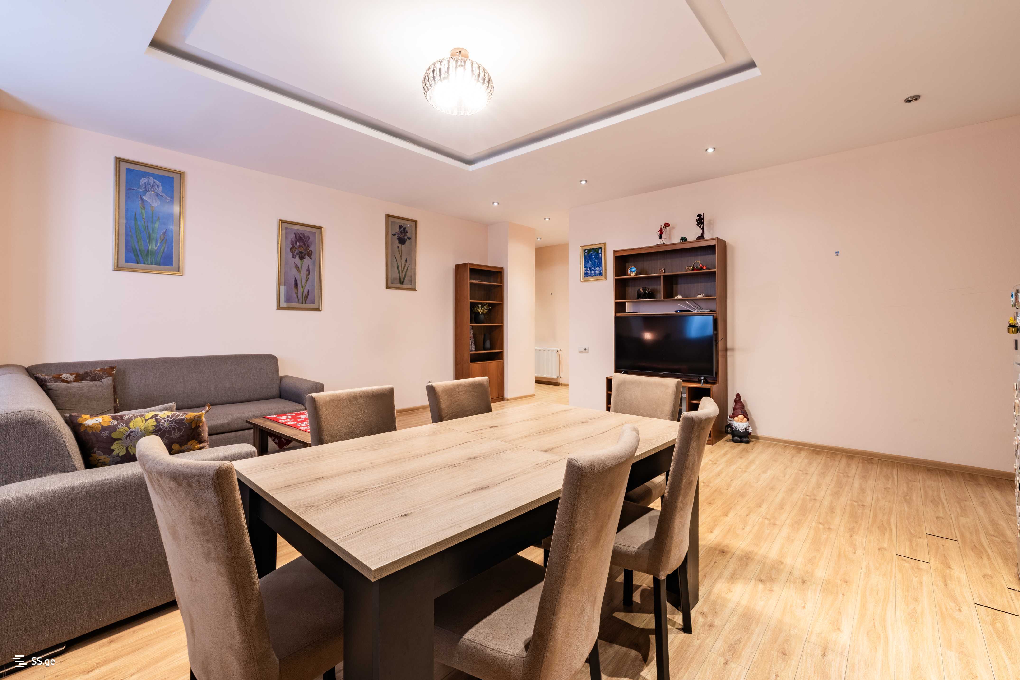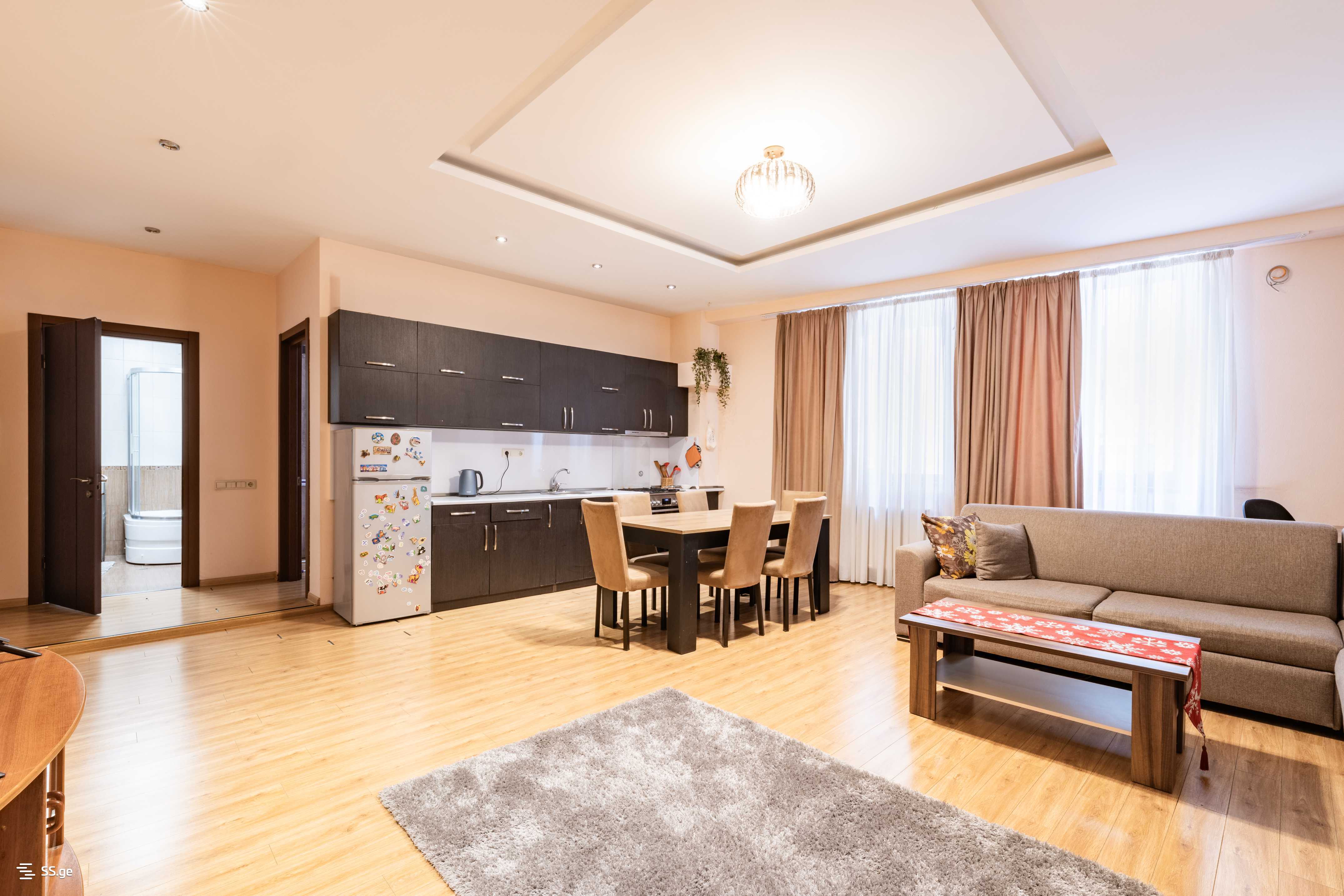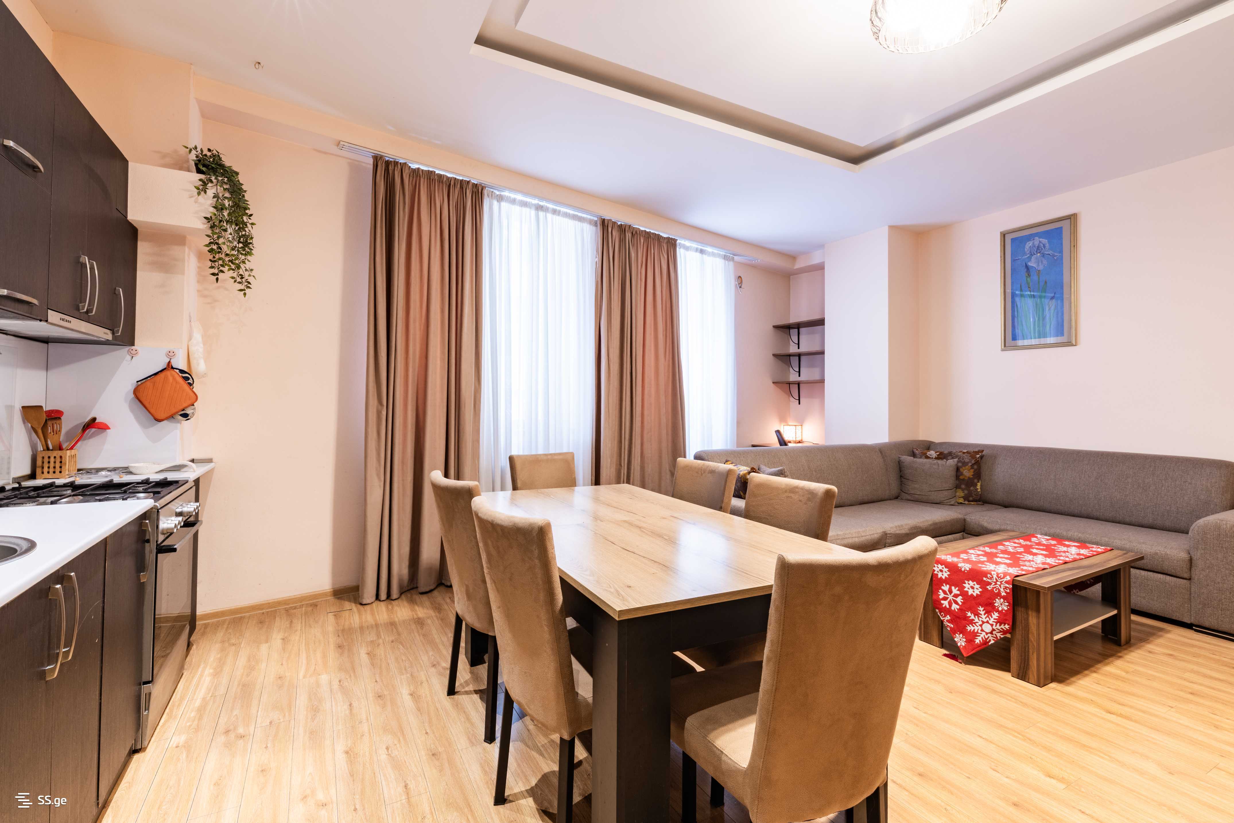ბინა მდებარეობს 200 მეტრში მეტროს სადგურიდან, საბურთალოს მაკდონალდსის უკანაა ტერიტორიაზე. აქვს დიდი სათავსო სივრცეები შესასვლელში, ფართო სტუდიოს ტიპის მისაღები ოთახი სამზარეულოთი, რომელიც აღჭურვილია ყველა საჭირო ტექნიკითა და ინვენტარით. საძინებლიდან გასასვლელია აივანზე. ბინა არის ძალიან მყუდრო და გაშლილი, ჯამში 80კვ/მ.
