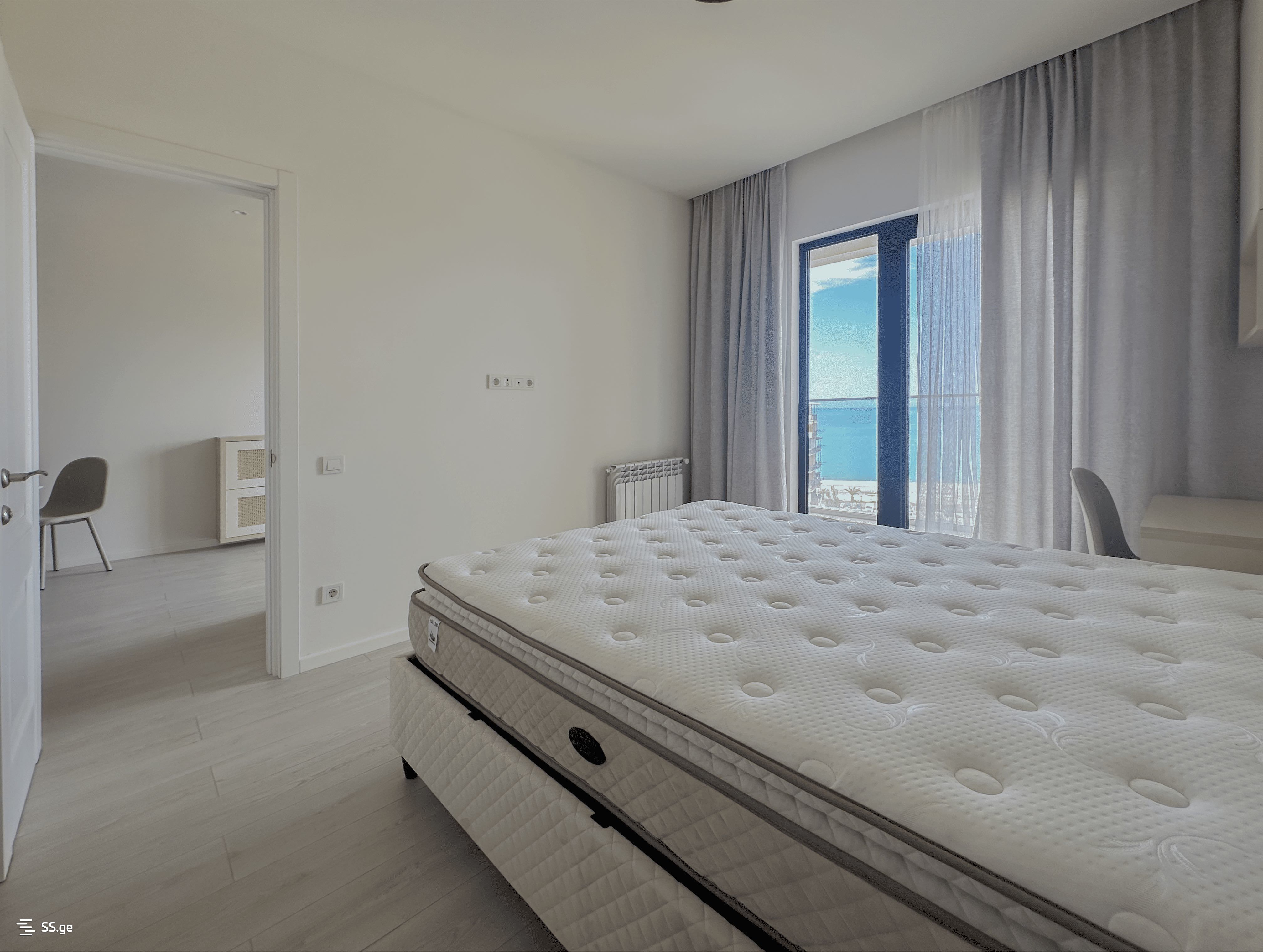 ეს ფართო ოროთახიანი ბინა (52 კვ.მ.) მდებარეობს მე-8 სართულზე პირდაპირი ზღვის ხედით. ინტერიერი სრულყოფილად დაგეგმილია: კომფორტული საძინებელი ორთოპედიული მატრასით, დიდი მისაღები ოთახი Smart TV-ით, თანამედროვე სამზარეულო ჩაშენებული ტექნიკით (მაცივარი, ღუმელი, მიკროტალღური, ჭურჭლის სარეცხი მანქანა), სრულყოფილი აბაზანა ფანჯრითა და სარეცხი მანქანით და ფართო აივანი ზღვის ხედით.