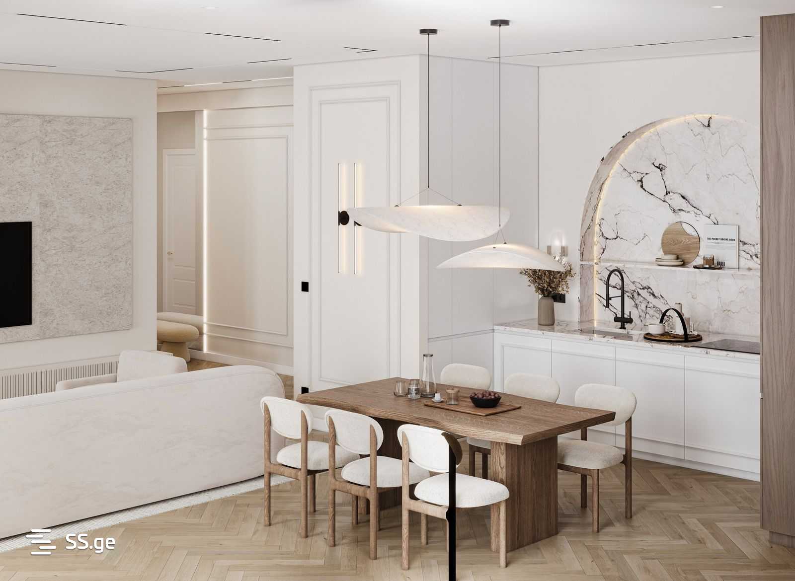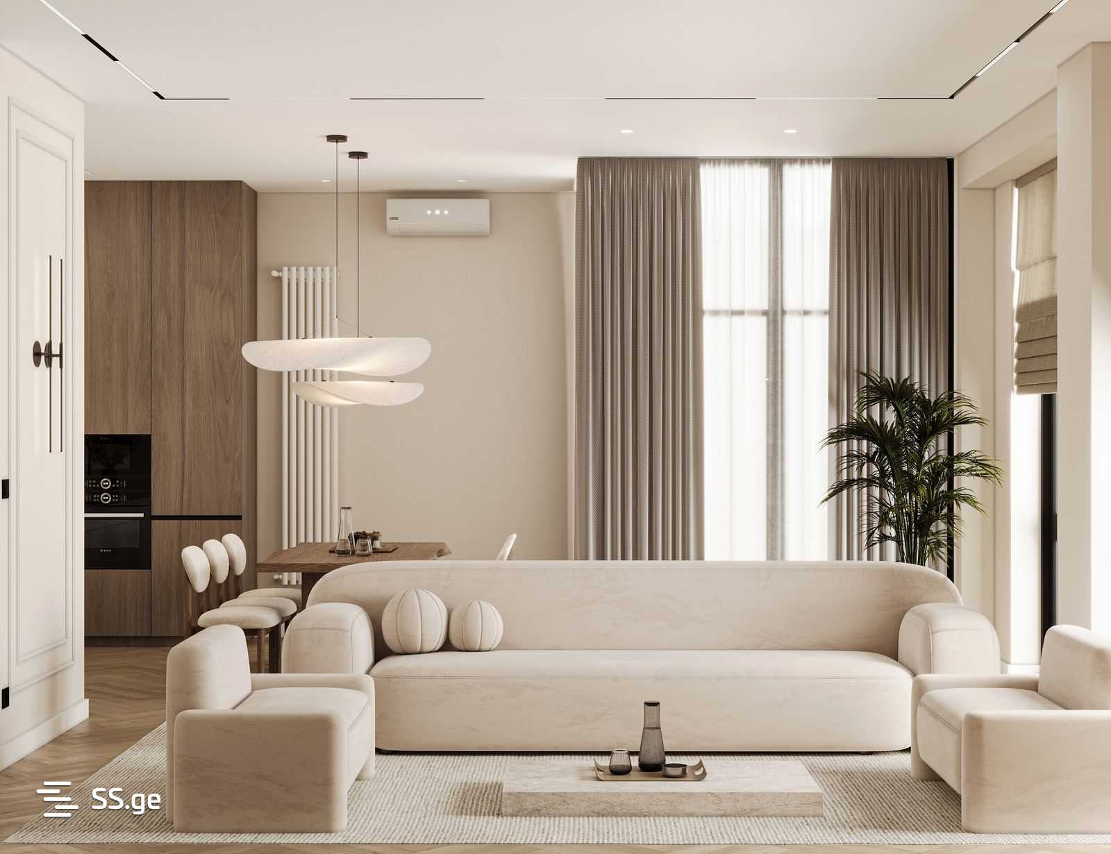დიზაინერული პროექტით შექმნილი ინტერიერი სრულდება უმაღლესი ხარისხის მასალებით. ბინა სრულად აღჭურვილი ჩაბარდება ახალ მფლობელს — ავეჯითა და თანამედროვე ტექნიკით. ინტერიერის დასრულება განხორციელდება ზუსტად ისე, როგორც წარმოდგენილია ვიზუალიზაციებში.