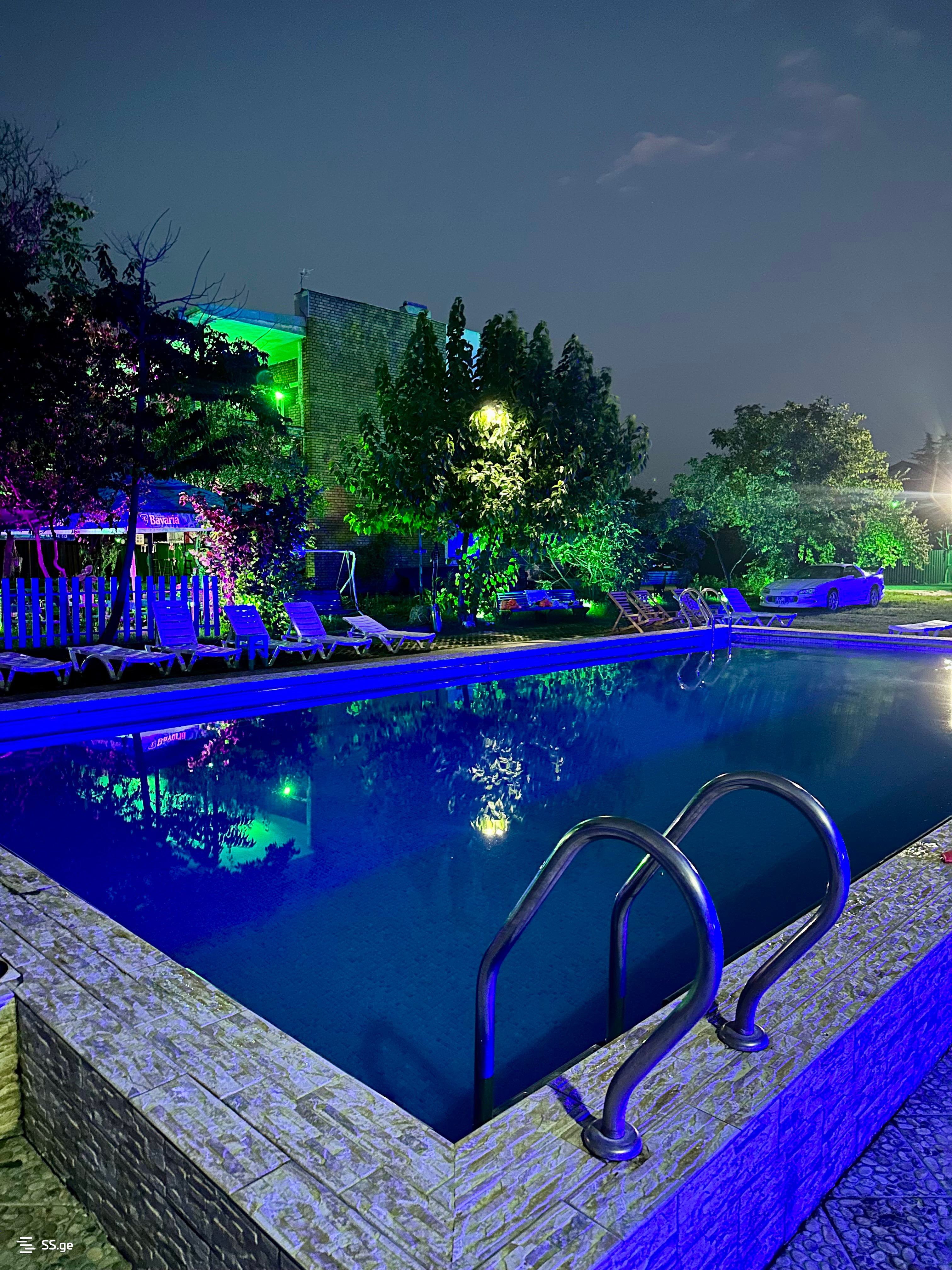 10-15 ადამიანი 500 ლარი. ამ ფასში შედის ერთი ნომერი სადაც დაიძინებს 3-4 ადამიანი. ადგილზეა ყველაფერი რაც საჭიროა ძვირფასი ჭურჭლით და მაყალით. არის პროფესიონალი დინამიკები, კარაოკე. ხმაზე არ არის შეზღუდვა. ობიექტზე არის მენეჯერი და დაცვა რომლებიც ყველაფერში დაგეხმარებიან. არის შიდა და გარე ბუხარი და ასევე შეგიძლიათ ეზოში დაანთოთ კოცონი. არის კალათბურთის ფარი, მაგიდის ტენისი, ტირი და ყველა სამაგიდო თამაშები. ჩვენთან არავინ შეგაწუხებთ და კამერებით ჩაწერა არ მიმდინარეობს. ზაფხულში შემოდგომაზე ლამაზად გამწვანებულ ეზოში შეგიძლიათ 30 -50 ადამიანზე გადაიხადოთ ნებისმიერი წვეულება აუზთან და ბართან რისი ფასი იქნება შეთანხმებით. გისურვებთ საუკეთესო დასვენებას.