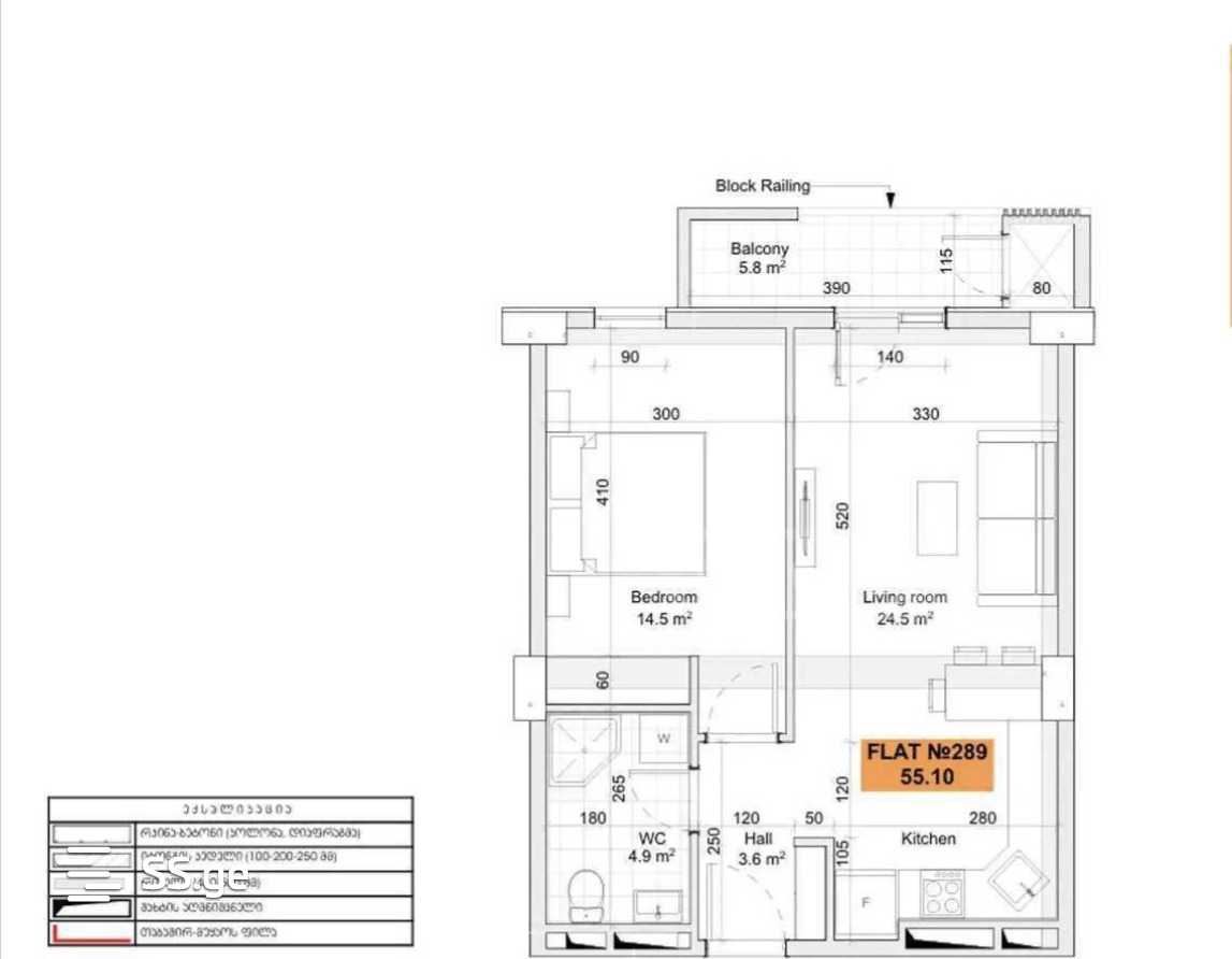 55.1 კვადრატული, ერთი იზოლირებული საძინებლით,