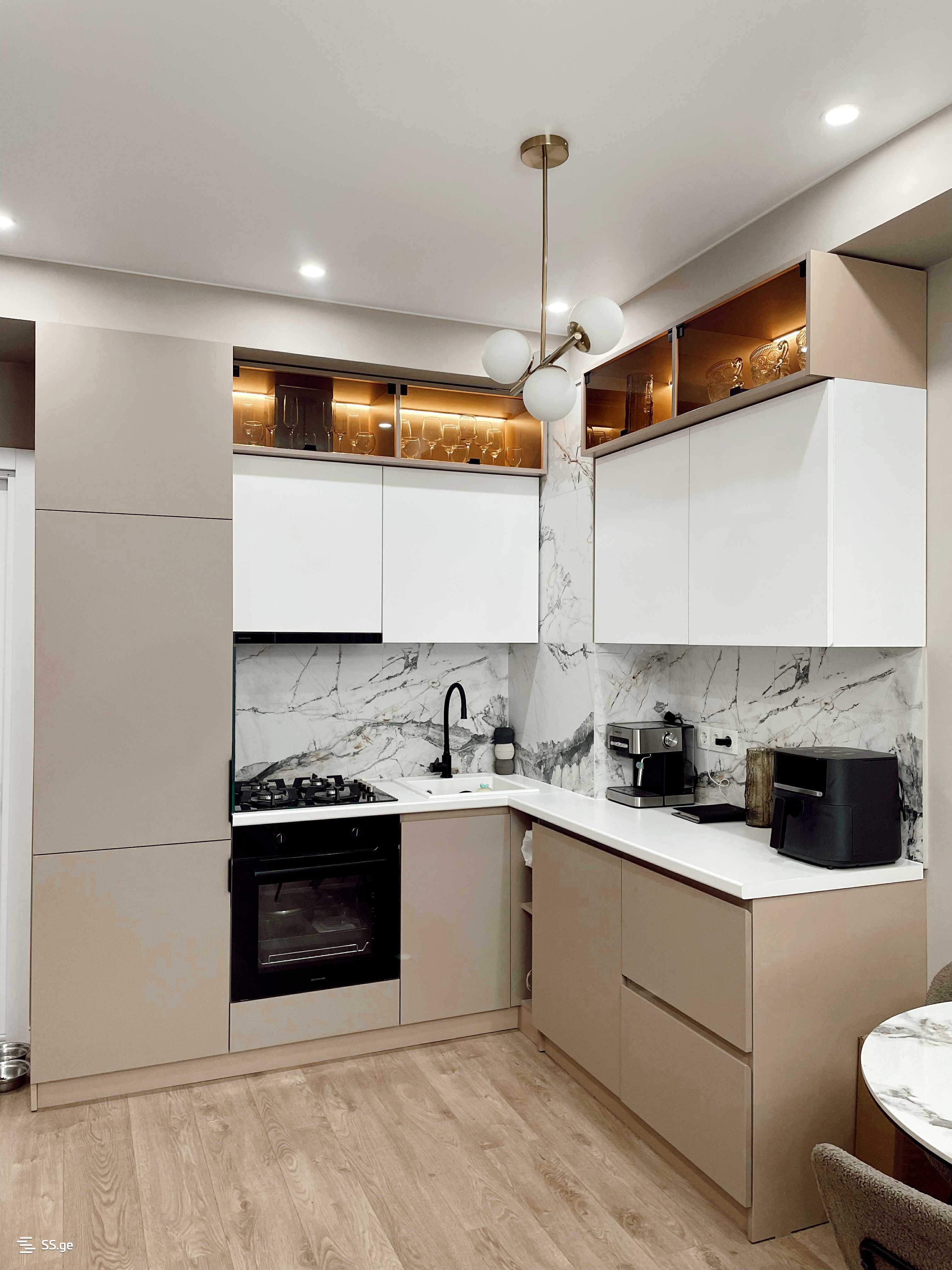 ბინა აღჭურვილია ჩაშენებული ავეჯით და ტექნიკით.