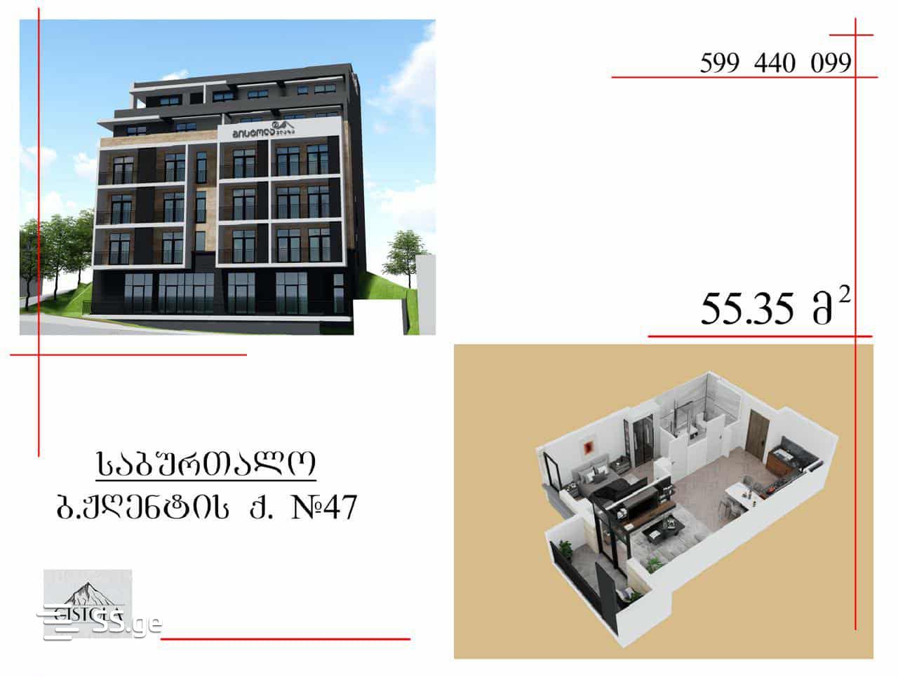 შეიძინე ბინა საბურთალოზე დასრულებულ კორპუსში. 2 ოთახიანი 55.35 კვ.მ | მწვანე პრემიუმ კარკასი + გარემონტებული აივანი. მიყვანილი კოსმეტიკურ რემონტამდე. საუკეთესო ადგილი, ქალაქის ხედით, ნათელი და მყუდრო გარემო