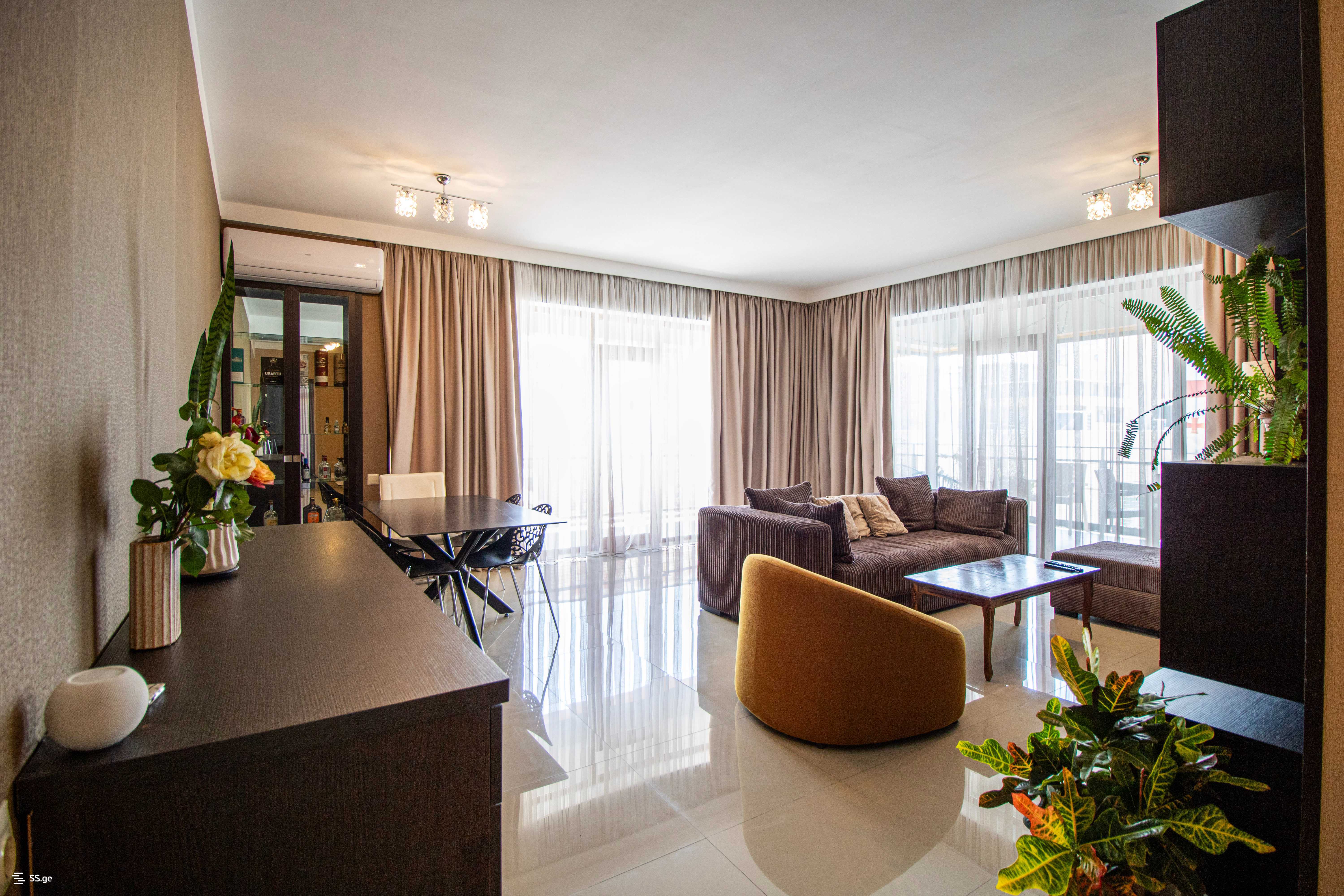 დამოუკიდებელი აივნები (მისაღებთან, სამზარეულოსთან და 2 საძინებელთან)