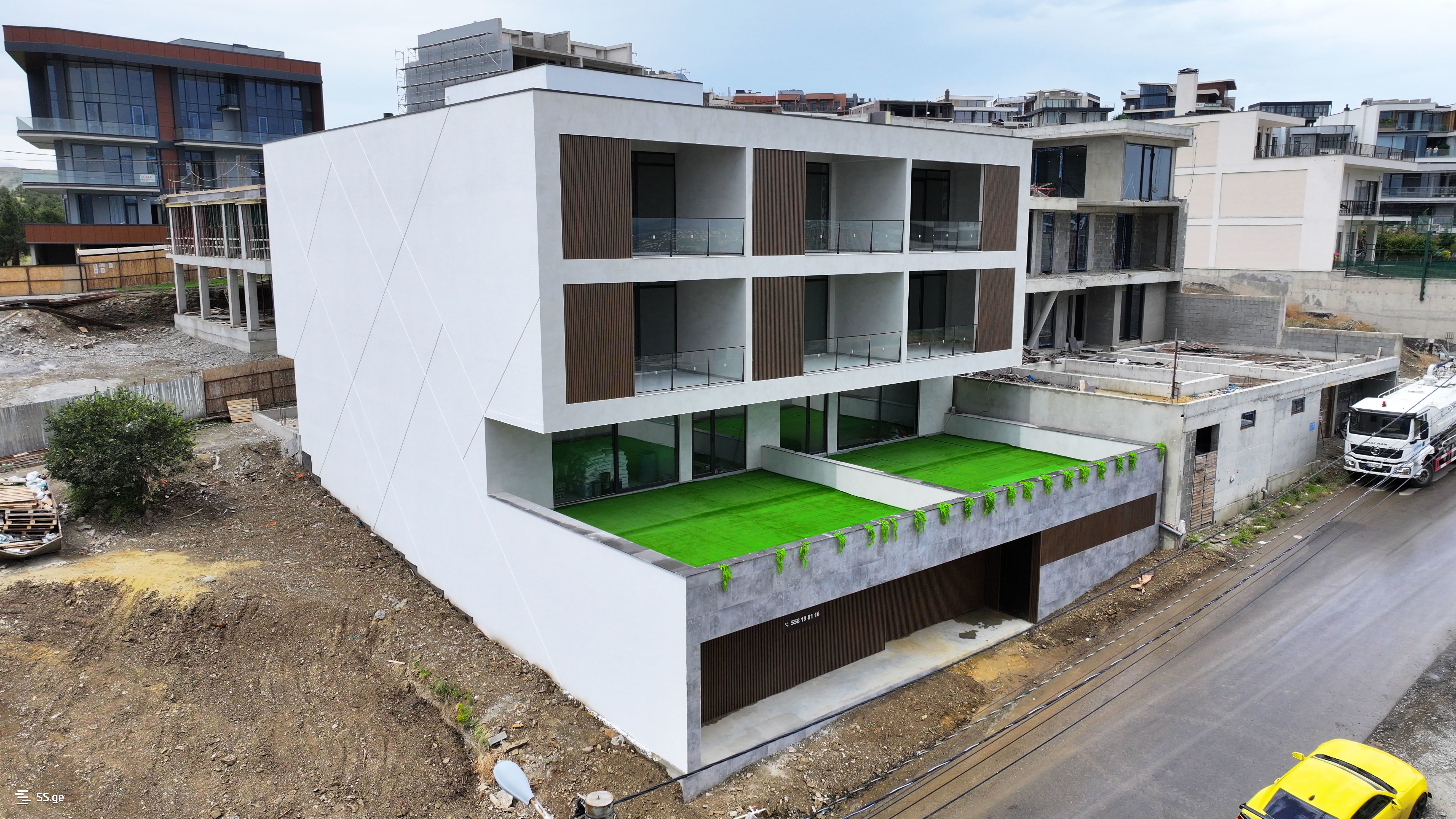 შენობა აშენებულია უმაღლესი ხარისხის მასალებით: პერლიტის ბლოკი, ალუმინის კარ-ფანჯრები, კომპოზიტური პანელები, არმარენოს ფასადის ფითხი, და ა.შ.