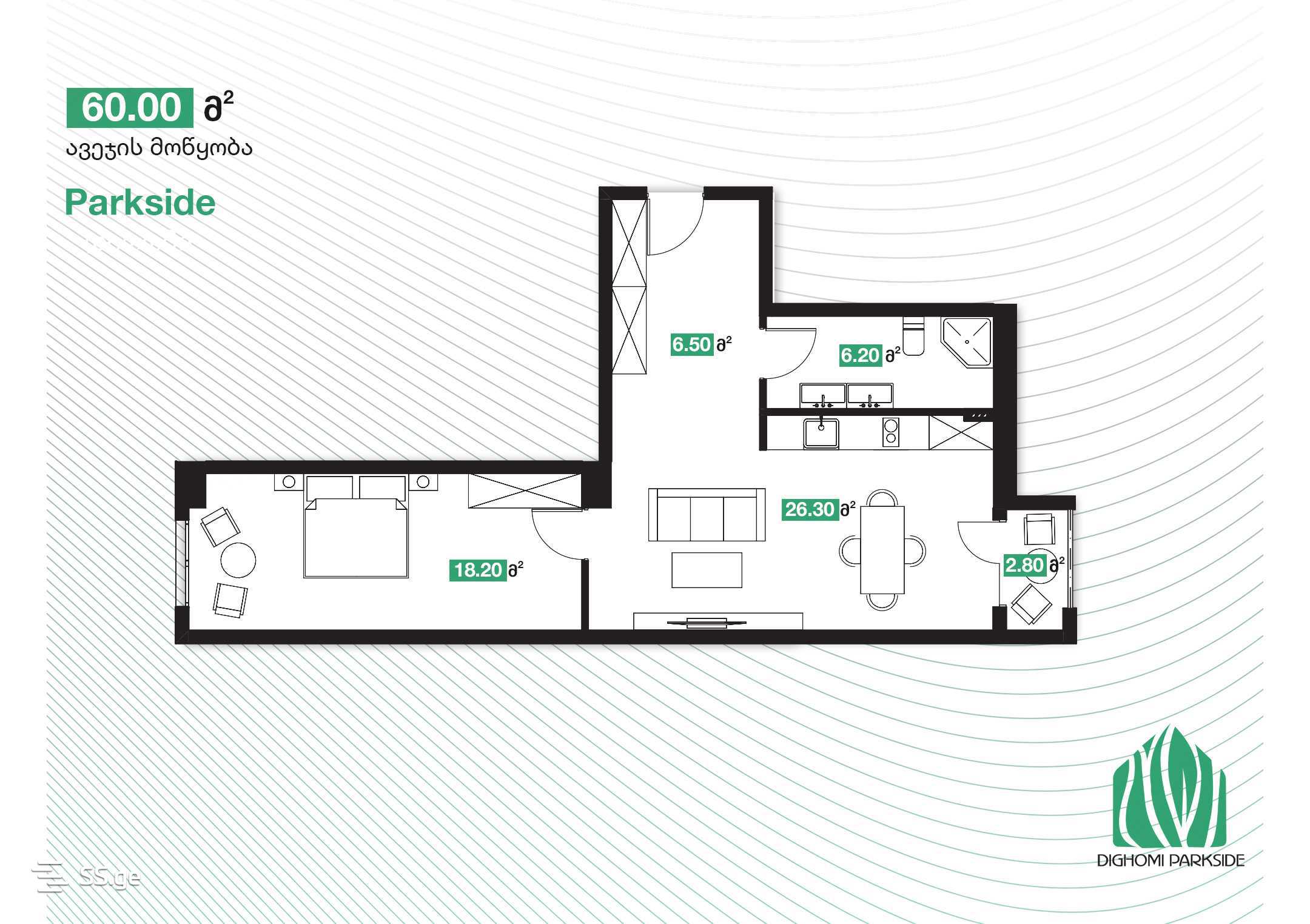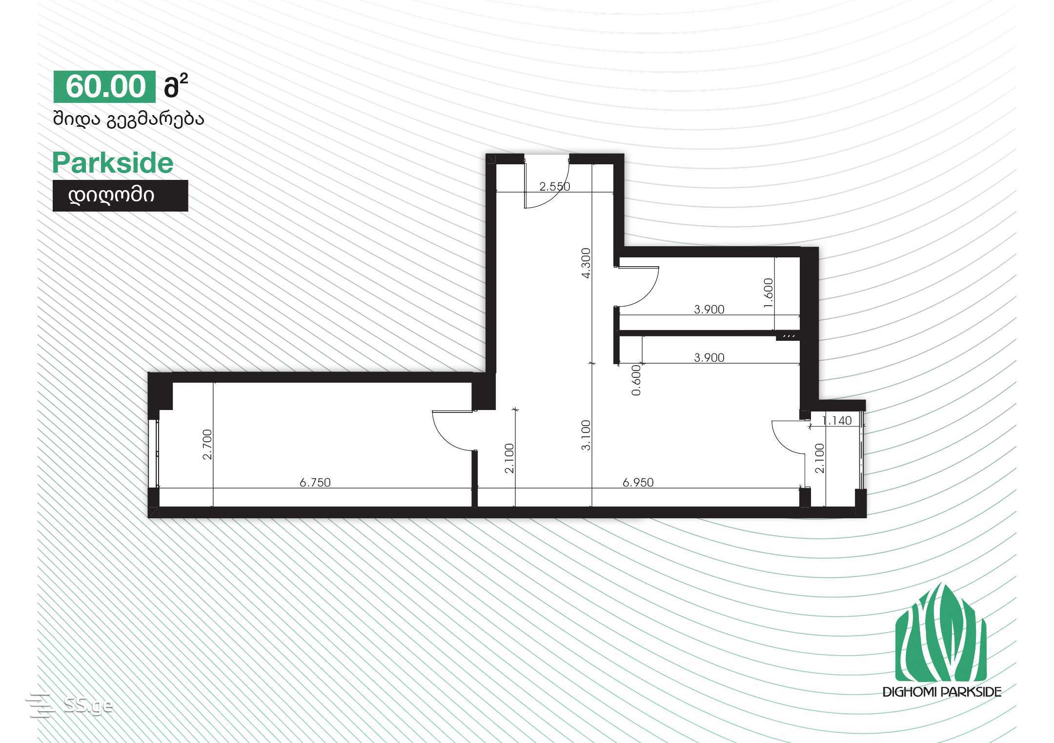 62,8 კვ.მ-მეორე სართული დასავლეთის მხარეს