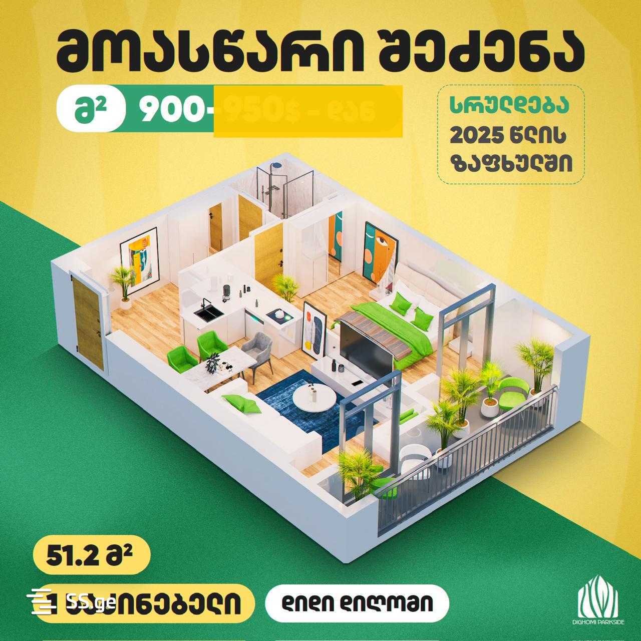 იყიდება 2 ოთახიანი ბინა დიდ დიღომში