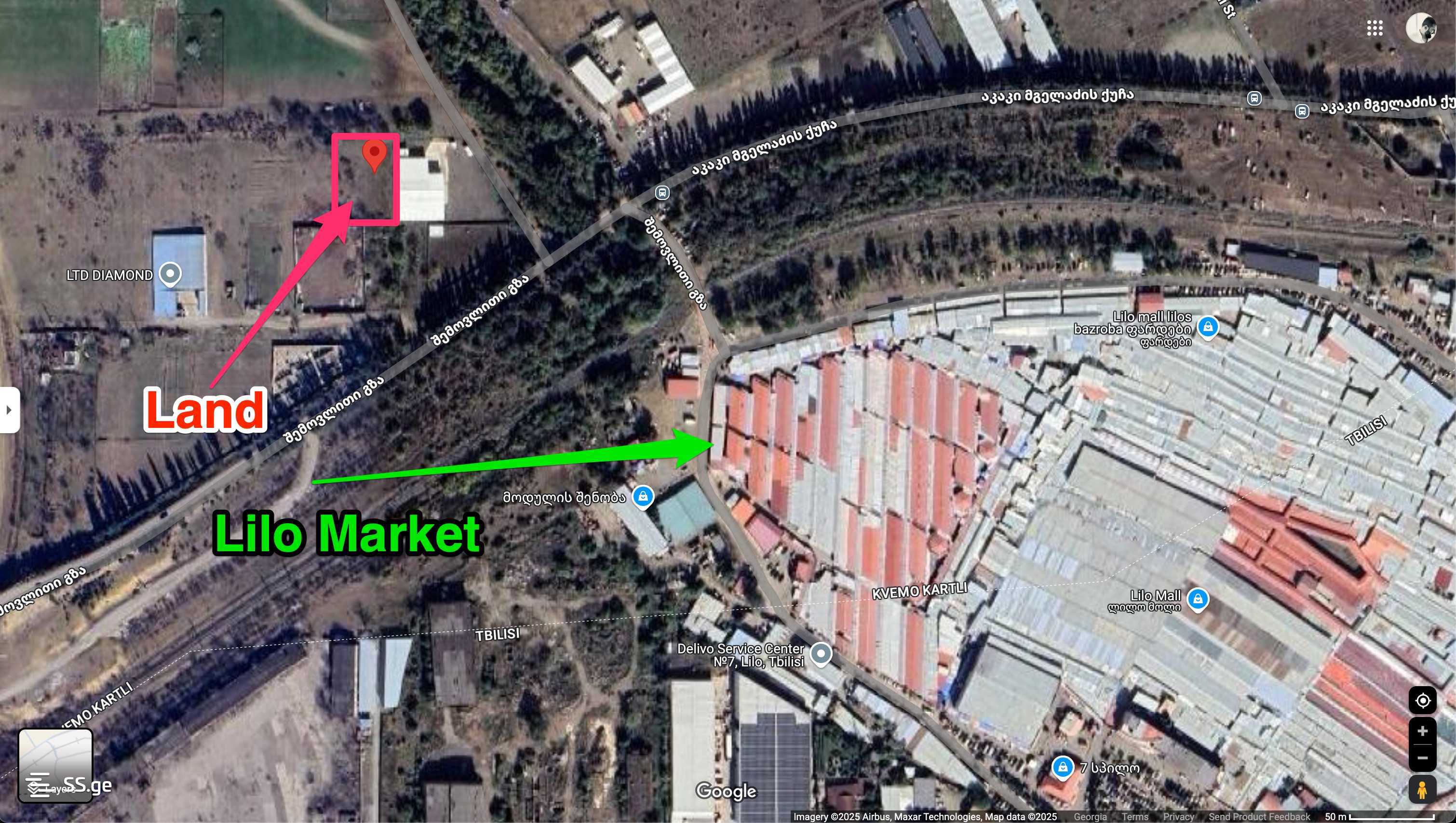 იყიდება 1 500 მ² მიწის ნაკვეთი ცენტრალურ გზაზე, პირდაპირ ლილო მოლის (თბილისის უდიდესი საბითუმო ბაზარი) უკან.