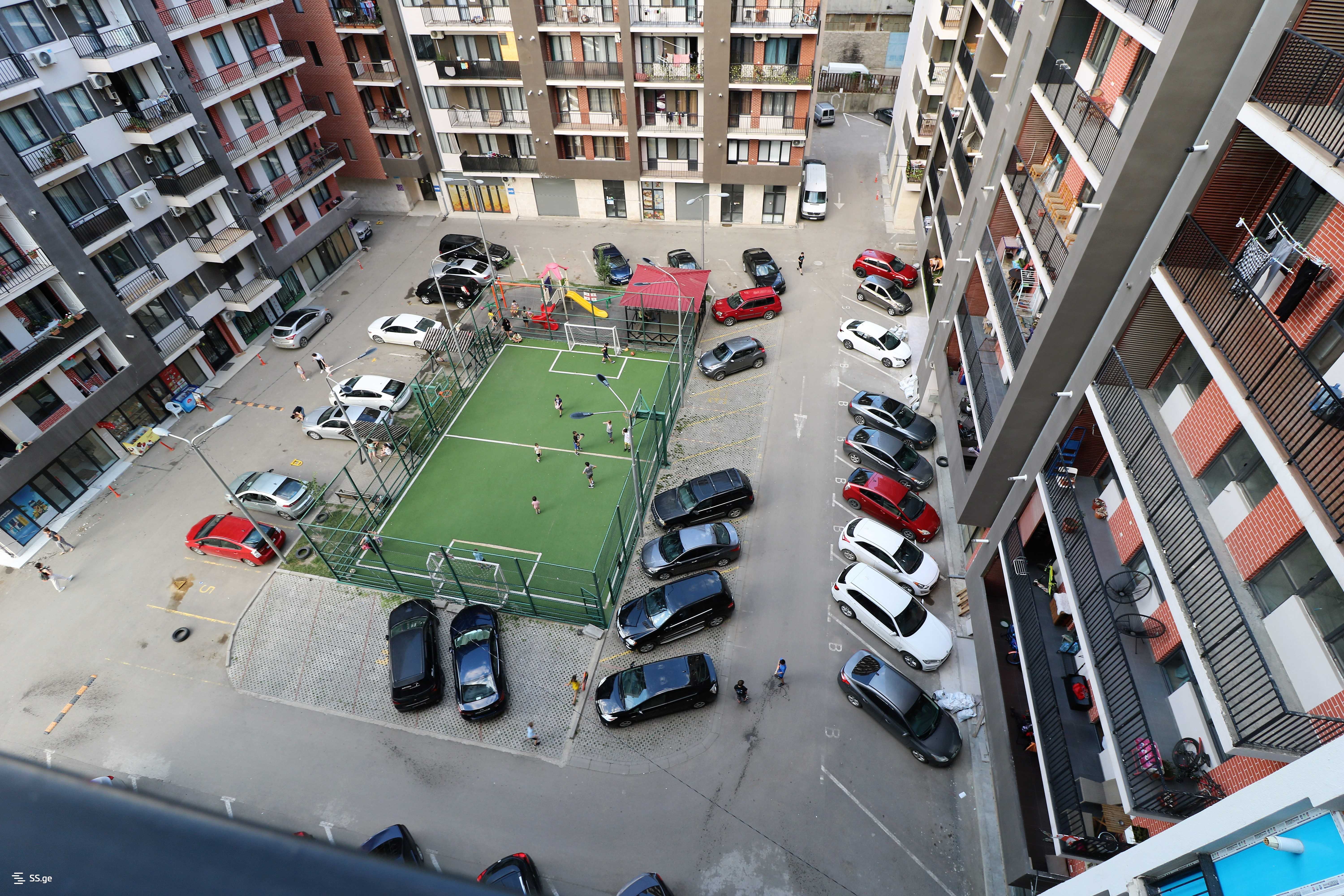 • ახლომდებარეობს ყველა საჭირო ობიექტი: მაღაზიები, ბანკები, კვების ობიექტები