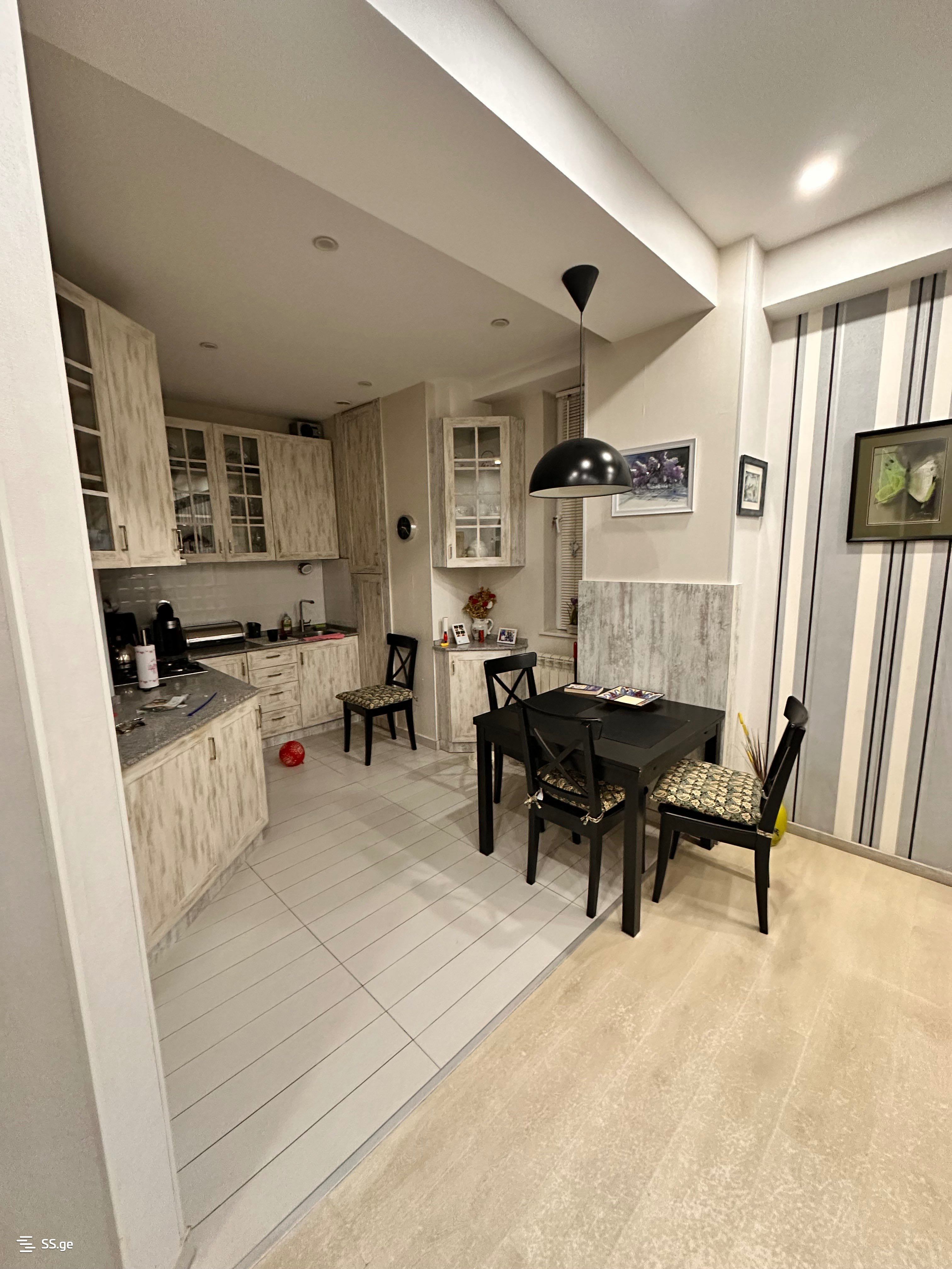 საბურთალოზე, შანხაიში, ევროპული სკოლის გვერდით იყიდება 61 კვ. ბინა. აბსოლუტურად კეთილოწყობილი. ესაა სტუდიოს ტიპის ბინა 1 საძინებლით. ნათელი. აქვს 2 პატარა ე.წ. ფრანგული აივანი. ბინა არის უმშვიდეს ადგილას და გადაყურებს ფიზიკის ინსტიტუტუს. ხმაური მინიმალური. ბინას აქვს ასევე (18 კვ) საპარკინგე ადგილი შენობაში ძალიან კარგ ადგილას (ლიფტის გვერდით). საპარკინე ადგილის ღირებულება ცალკეა.