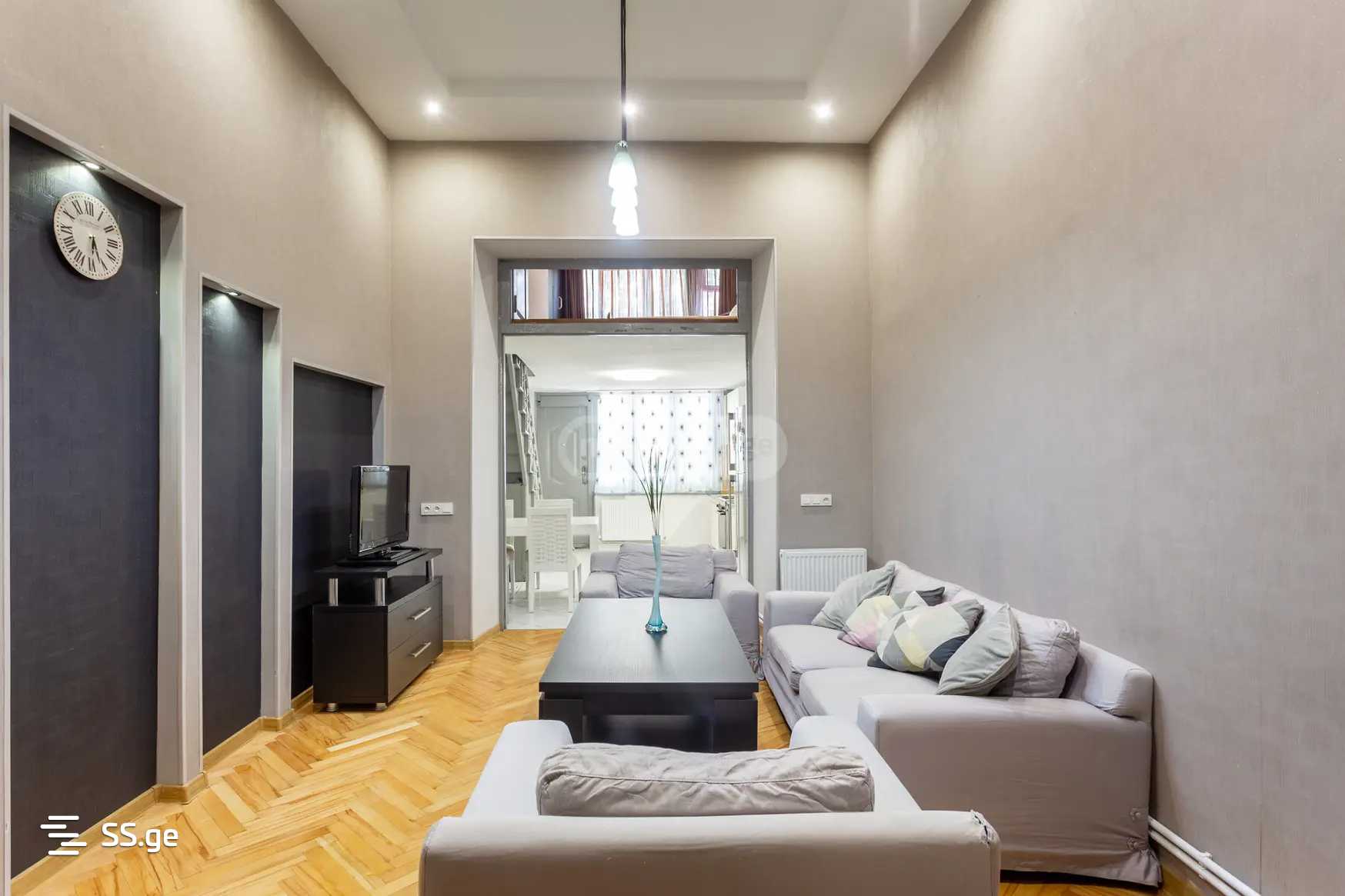 ერთ საძინებელი იზოლირებულია, მეორე კი ანტრესოლითაა მოწყობილი. უზრუნველყოფილია კონდიციონერითა და ცენტრალური გათბობით. იდეალურია მათთვის, ვისაც სურს მშვიდი გარემო ქალაქის ცენტრში.