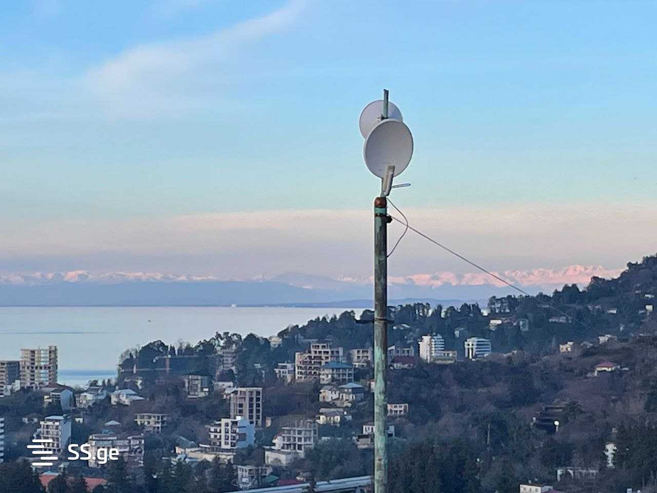 მესამე სართულზე ღია ტერასა ზღვისა და მთების ხედი.