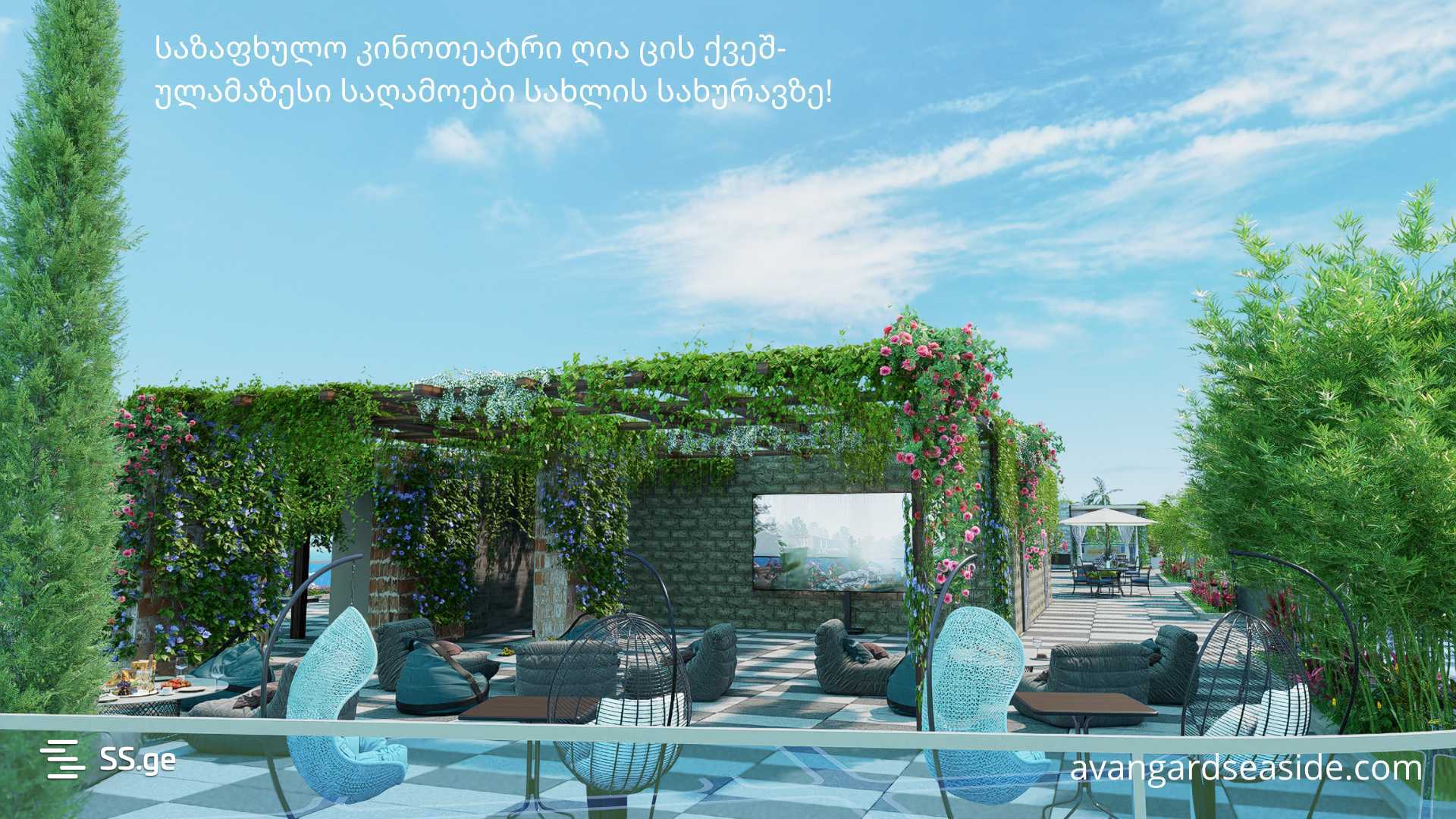 განვითარებული შიდა და გარე ინფრასტრუქტურა მაქსიმალური კომფორტისთვის ელეგანტური მისაღები ჰოლი რეცეპციის ზონით კონსერჟის მომსახურება – ათი დღის განმავლობაში მაღალი ხარისხის სერვისი ყოველდღიურ ცხოვრებაში დისტანციური მართვის სისტემა – ბინის სრულფასოვანი კონტროლი მსოფლიოს ნებისმიერ წერტილიდან რუმ სერვისი ტექნიკური მხარდაჭერის ჯგუფი 24/7 დაცვა და ვიდეოკონტროლი 24/7 რელაქსის, აქტიურობისა და სილამაზის იდეალური ბალანსი: საცურაო აუზი მე-10 სართულზე – ზღვის ხედით მწვანე ვერანდა დასასვენებელი ზონებით – სახლის სახურავზე შექმნილი ბუნებრივი ოაზისი რელაქსაციის დარბაზი – სივრცე მშვიდი განტვირთვისთვის ესთეტიკის ცენტრი – სილამაზისა და თავის მოვლის მაღალი სტანდარტი თანამედროვე ფიტნეს ცენტრი და სკვოშის კორტი – აქტიური ცხოვრების სტილისთვის კაფე-რესტორანი