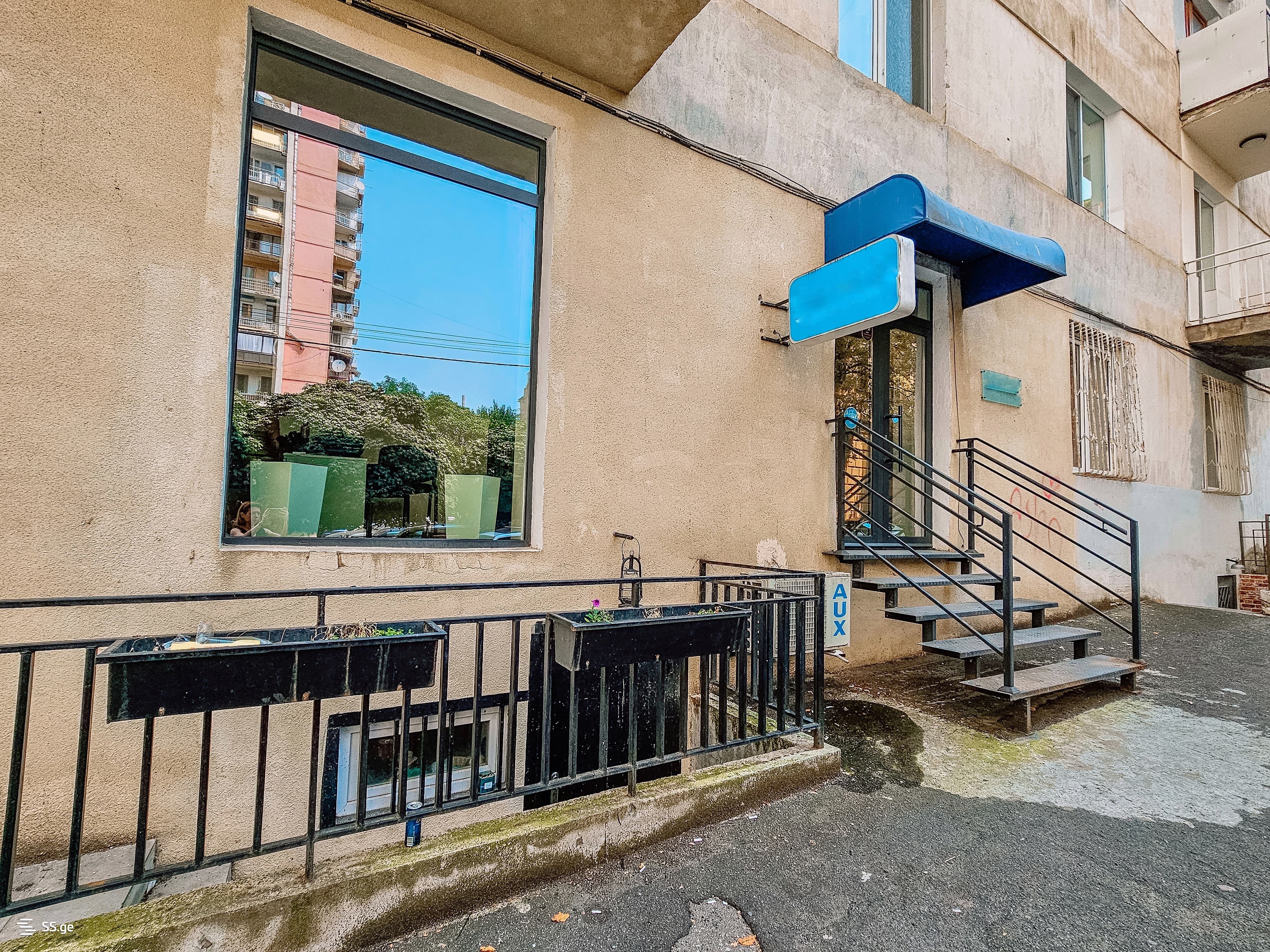 ფართში ინტეგრირებულია სარდაფი (20 კვ. მ.) ეზოში არის ავტოსადგომი. მისაღებია ნებისმიერი ბიზნესისათვის: სილამაზის სალონი, კლინიკა, მაღაზია, კაფე.