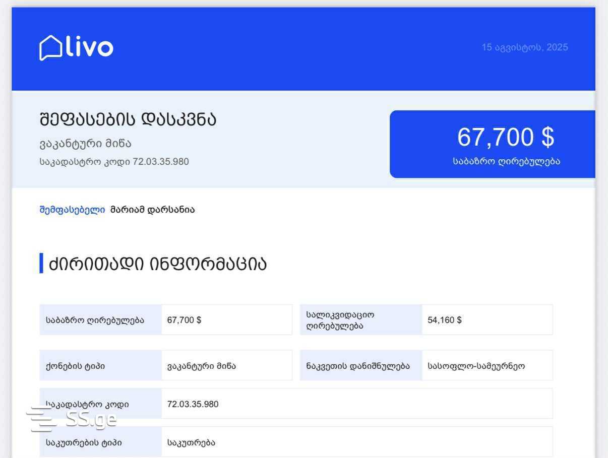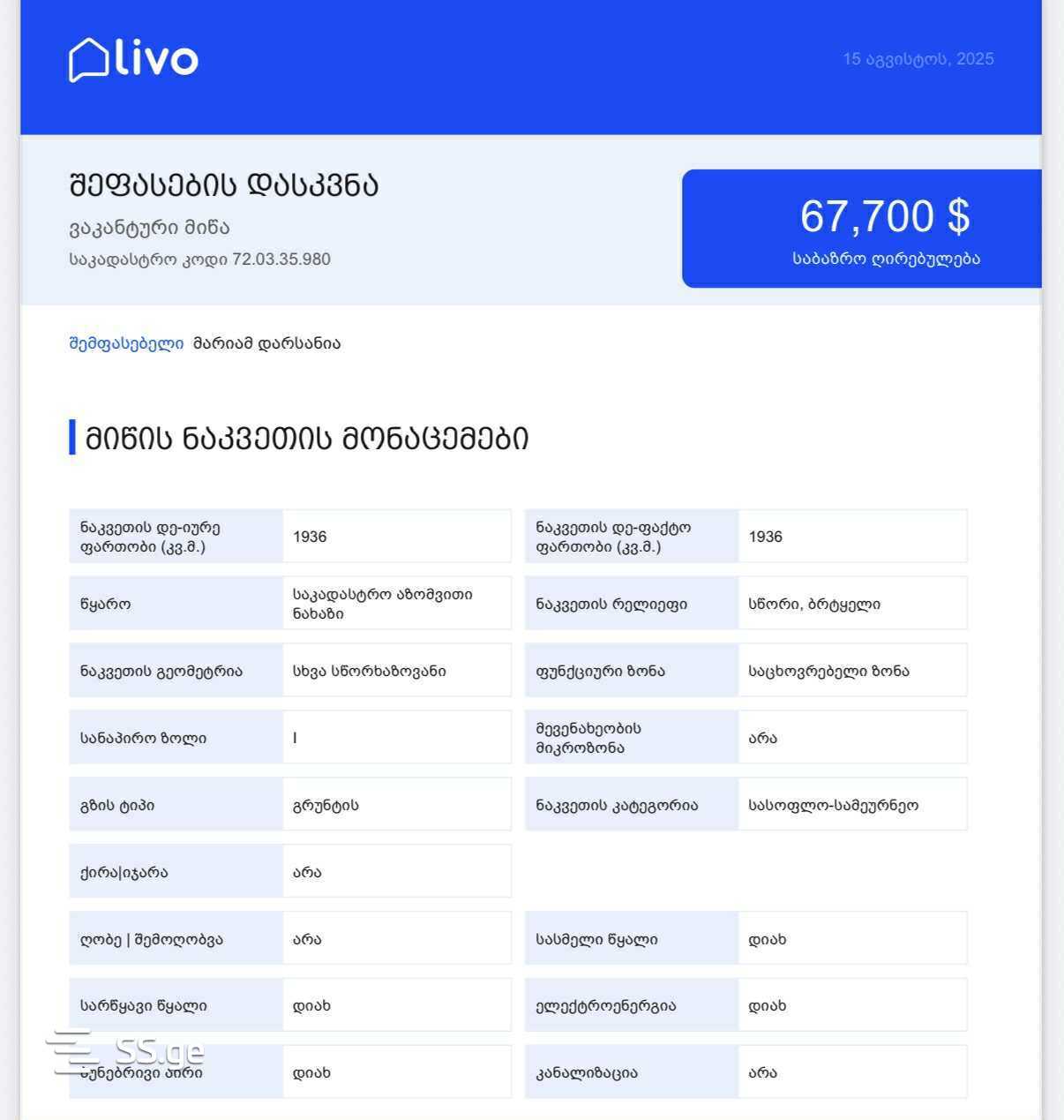 ვარ მეპატრონე ბოლო ფასი იქნება 65 000$ მთლიანად შეძენის შემთხვევაში. შესაძლებელი არის გაყოფაც! მცხეთის რაიონი სოფელი ახალუბანი.