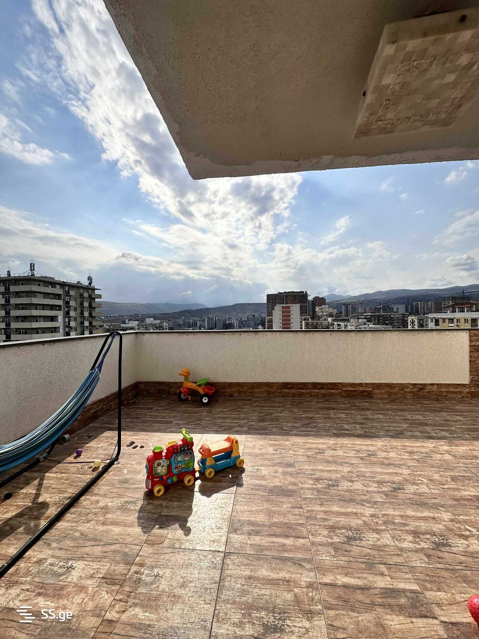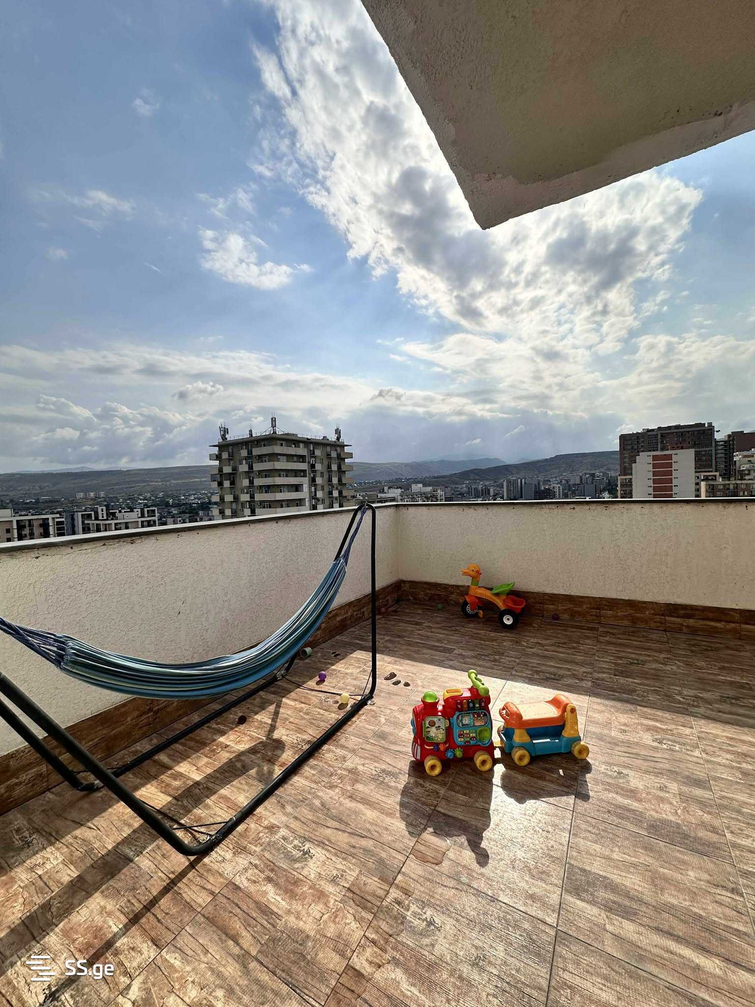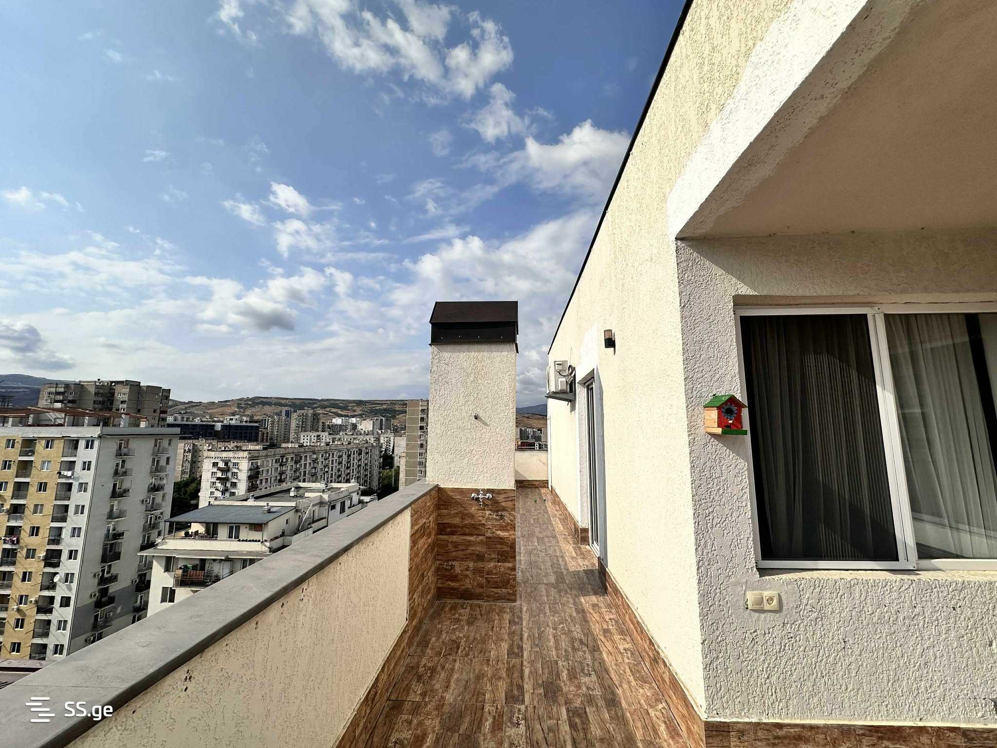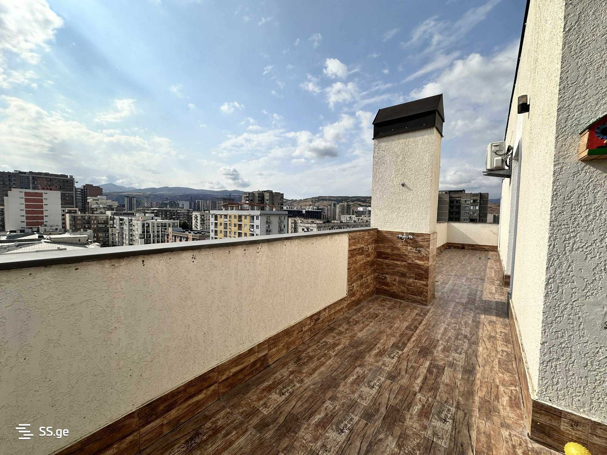 ბოლო (13-ე) სართულზე მდებარე მყუდრო და ნათელი პენტჰაუსი, დიდი ვერანდით და ორი დამატებითი აივნით.