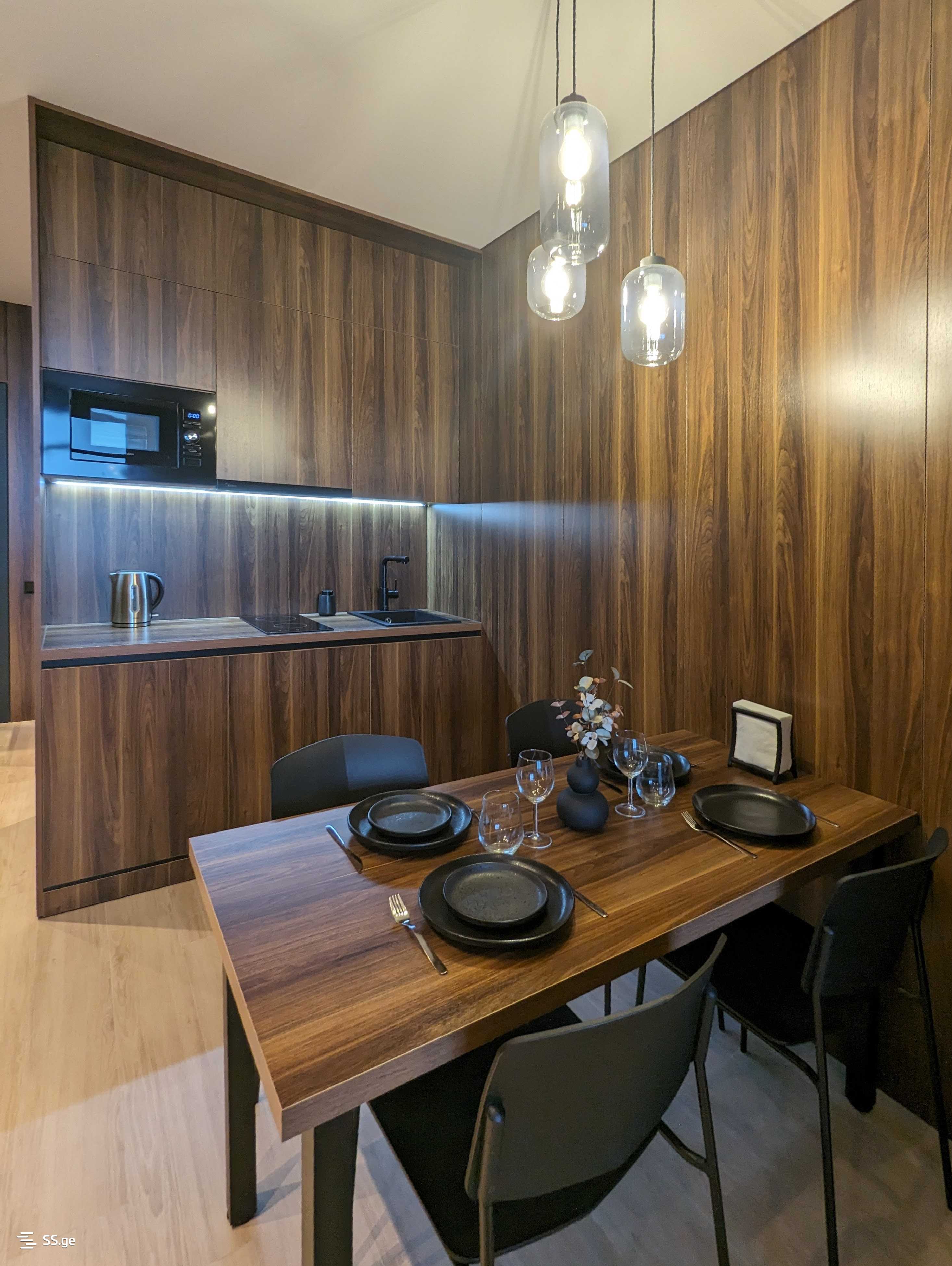 კომფორტისთვის ბინა აღჭურვილია გაზის გათბობით და წყლის იატაკის გათბობის სისტემით.