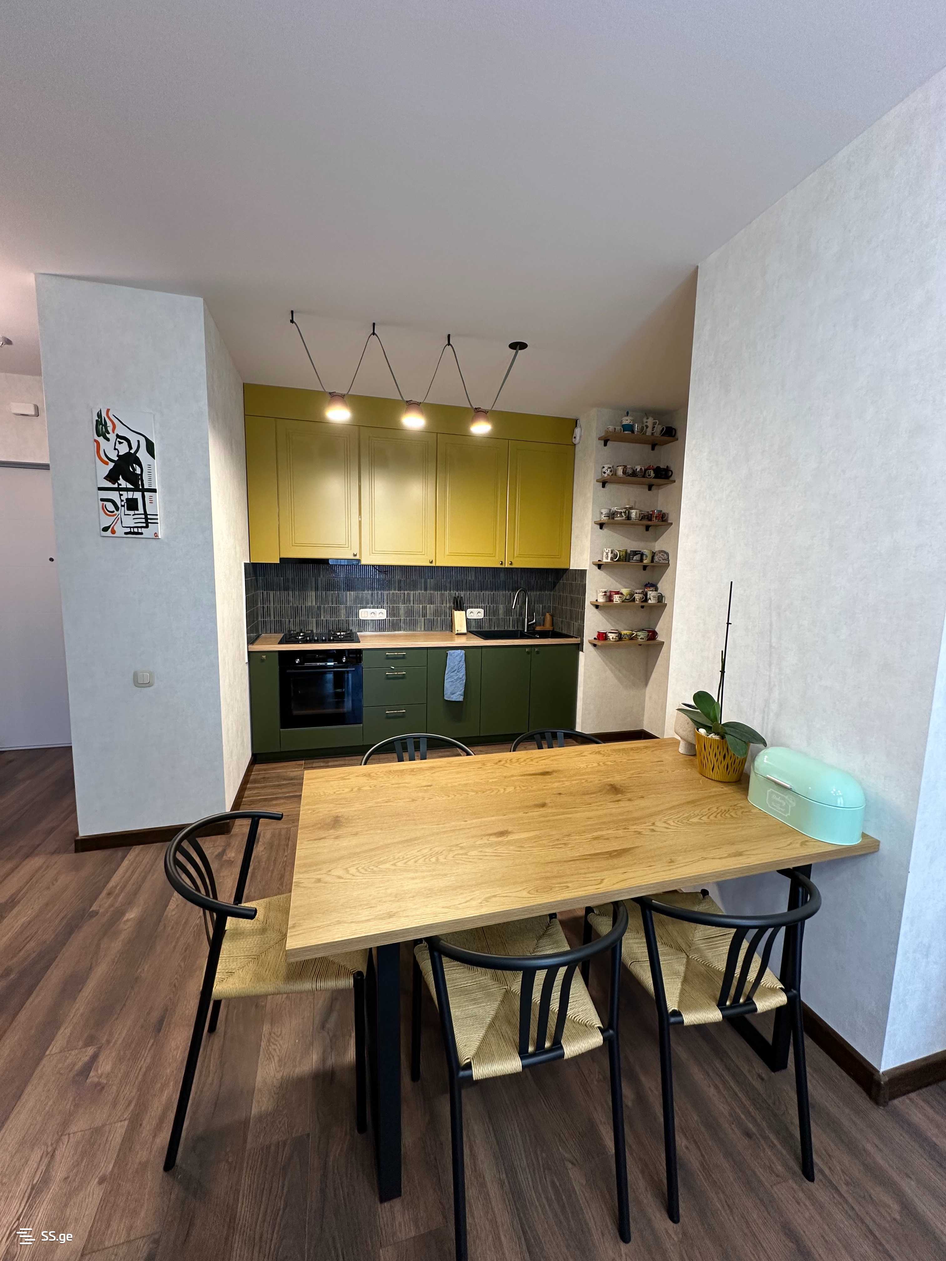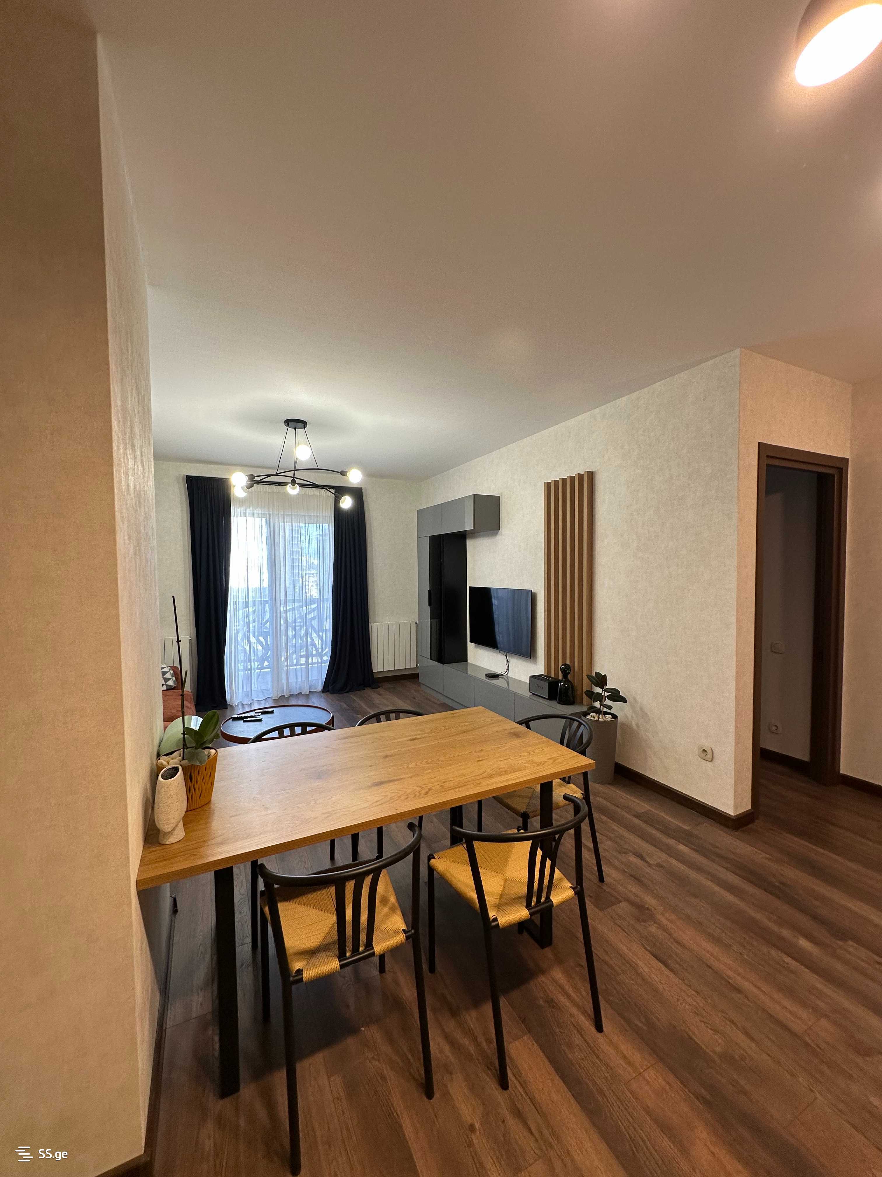 ქირავდება 2 ოთახიანი სტუდიო ტიპის ბინა მ3 საბურთალოს ახლადაშენებულ კომპლექსში. ბინა არის სრულიად აღჭურვილი ტექნიკითა და ავეჯით. დამონტაჟებულია Bosch-ის სამზარეულო ტექნიკა, LTB-ის ჩაშენებული კარადები და სხვა საკმაოდ მაღალი ხარისხის ავეჯი. სანტექნიკა მეტწილად არის Grohe-ს ფირმის. ბინა გარემონტებულია 8 თვეა, ვიცხოვრეთ სულ 3 თვე. ბინა არ გაკეთებულა გასაქირავებლად, ამიტომ ტექნიკაც, ავეჯიც და სანტექნიკაც არის საკმაოდ მაღალი ხარისხის. კომპექსში განთავსებულია ნიკორას ორი 24 საათიანი მაღაზია, 2 ნაბიჯი, კარფური, ევროპროდუქტი, სპარი, სუფთა სახლი, ალკორიუმი, ალკოსფერო, ფარმადეპო, სამშენებლო და სამეურნეო მაღაზიები. 200 მეტრში მდებარეობს 24 საათიანი აგროჰაბი. კომპლექსს აქვს დიდი გამწვანებული ეზო, დასრულების პროცესშია პარკი ტბით. აქვს სამი სხვადასხვა შესასვლელი, როგორც მარშალ გელოვანის, ასევე სანაპიროს (აკაკი ბაქრაძის ქუჩა) მხრიდან. კომპლექსის ტერიტორიაზე არის ბაქსვუდის სკოლა. უახლოეს მომავალში იგეგმება სპორტდარბაზის და აუზის გახსნა. ტერიტორიაზე არის თავისუფალი პარკინგის დიდი რაოდენობა და მანქანის გაჩერება არ წარმოადგენს პრობლემას. სადარბაზოები დაკეტილია და იღება ჩიპებით, ასევე მონტაჟდება დომოფონები. კორპუსს აქვს ორი დიდი ზომის ლიფტი, რომლებიც მუშაობს ელექტროენერგიის გათიშვის შემთხვევაშიც.